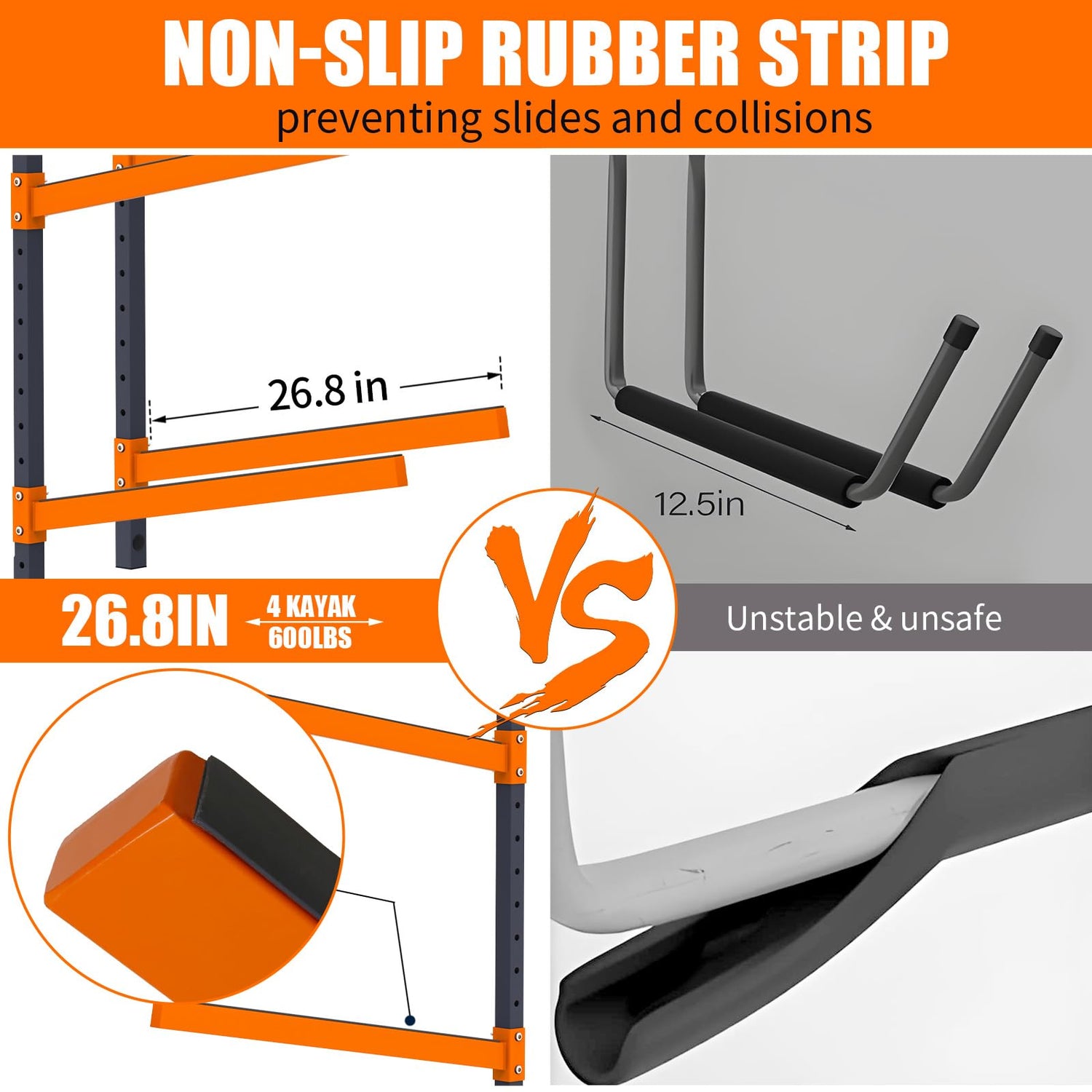 - 【Safety and Reliability】Our kayak storage rack is manufactured sturdy industrial steel engineered to hold up to 150 lbs per level; It boasts excellent durability and not easy to be deformed; The outer surface of the steel is powder coated, which has the advantages of corrosion resistance,abrasion resistance and colorfastness; A perfect choice to put the wall mount kayak rack for any outdoor or indoor area