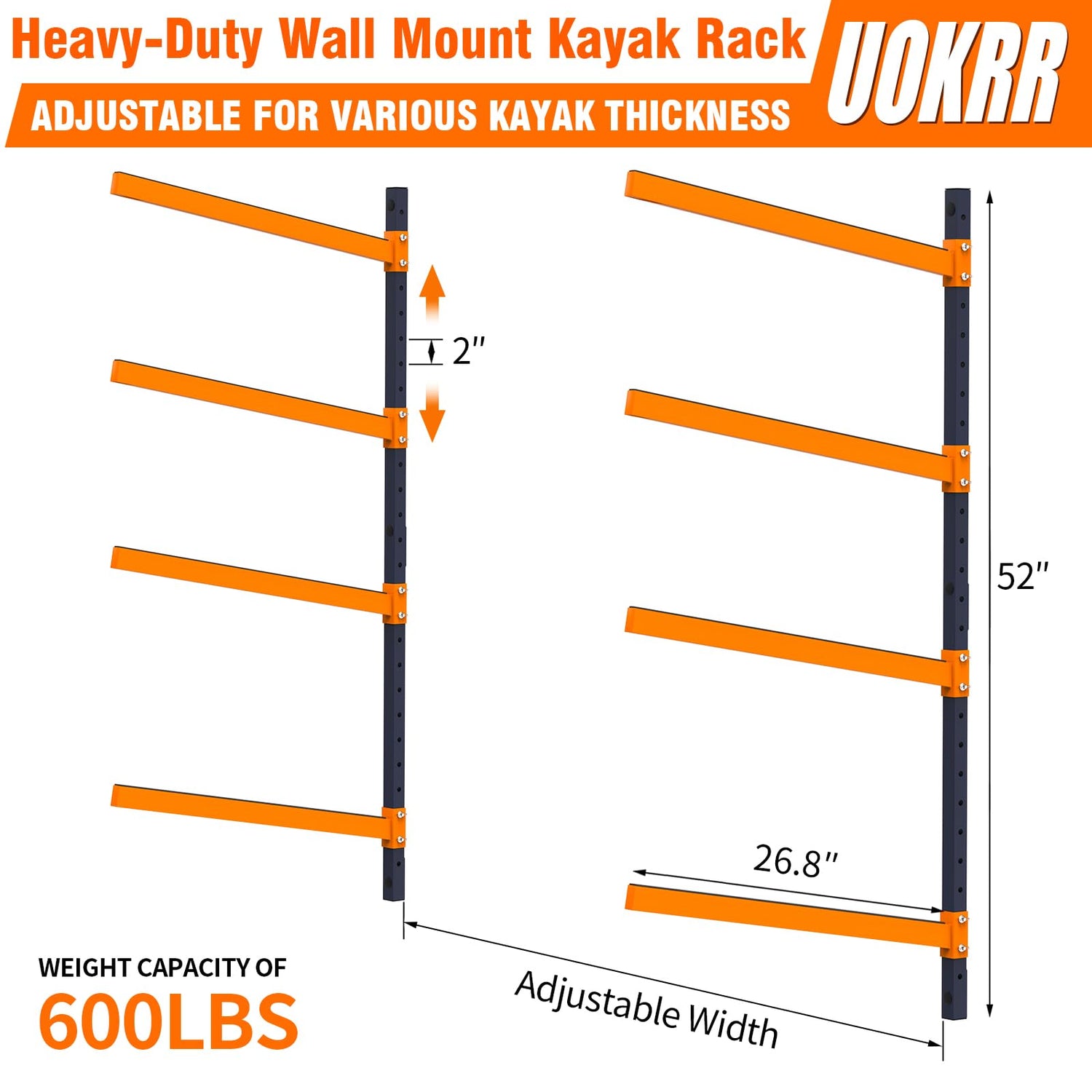 - 【Wall-mounted Kayak Stand】Assembled Kayak rack measures 30.5/43/52" H x 26.8" arm, the wall mount kayak storage effectively uses your outdoor garage dock backyard shed or even porch space, keeping your kayaks organized, each tier of the kayak holder is equipped with a butterfly screw for easy installation