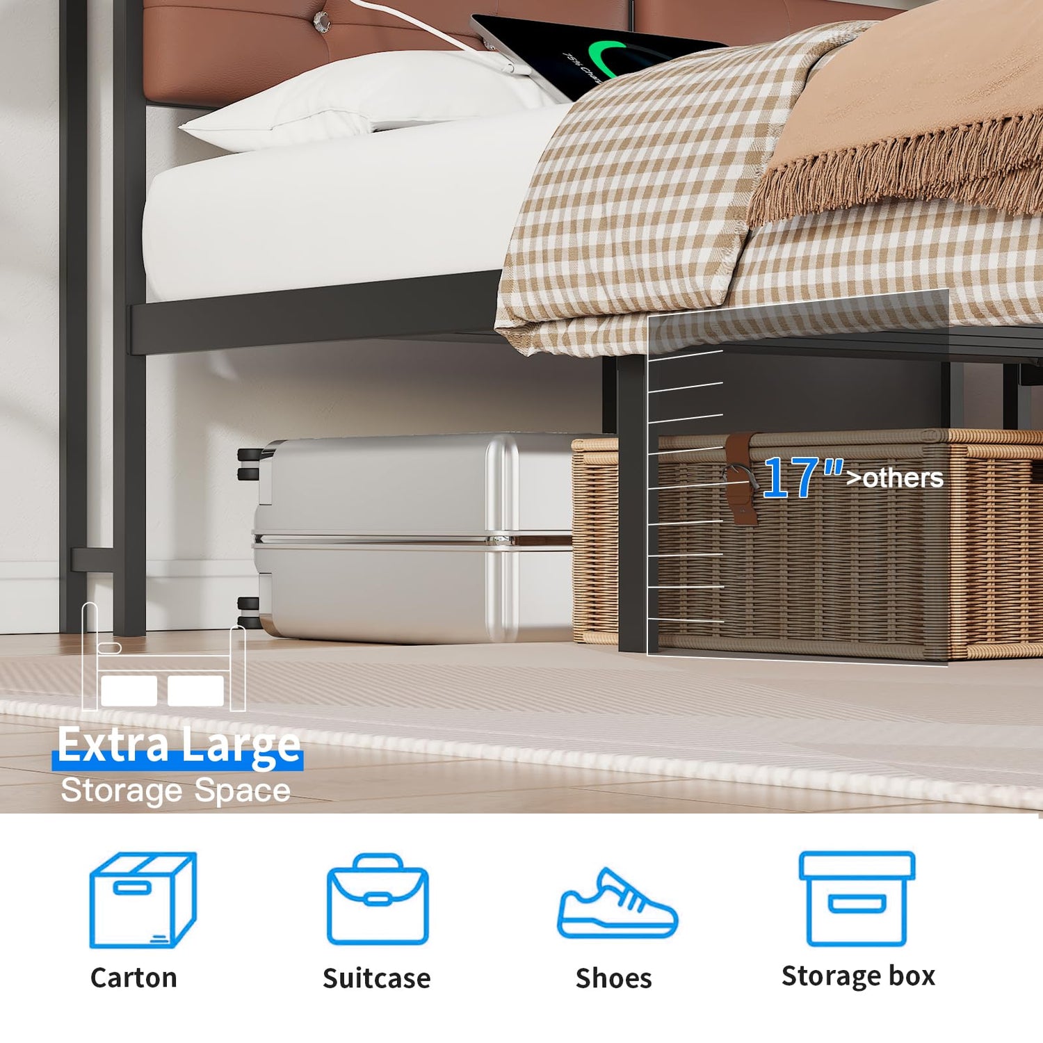 - LARGE STORAGE SPACE:The high bed frame twin size with tall bed legs,provide a 17 inch height space, extra large under-bed storage space.Perfect for strorage carton,suitcase,shoes,box etc,space save and keep your room tidy,NO CHAOS.