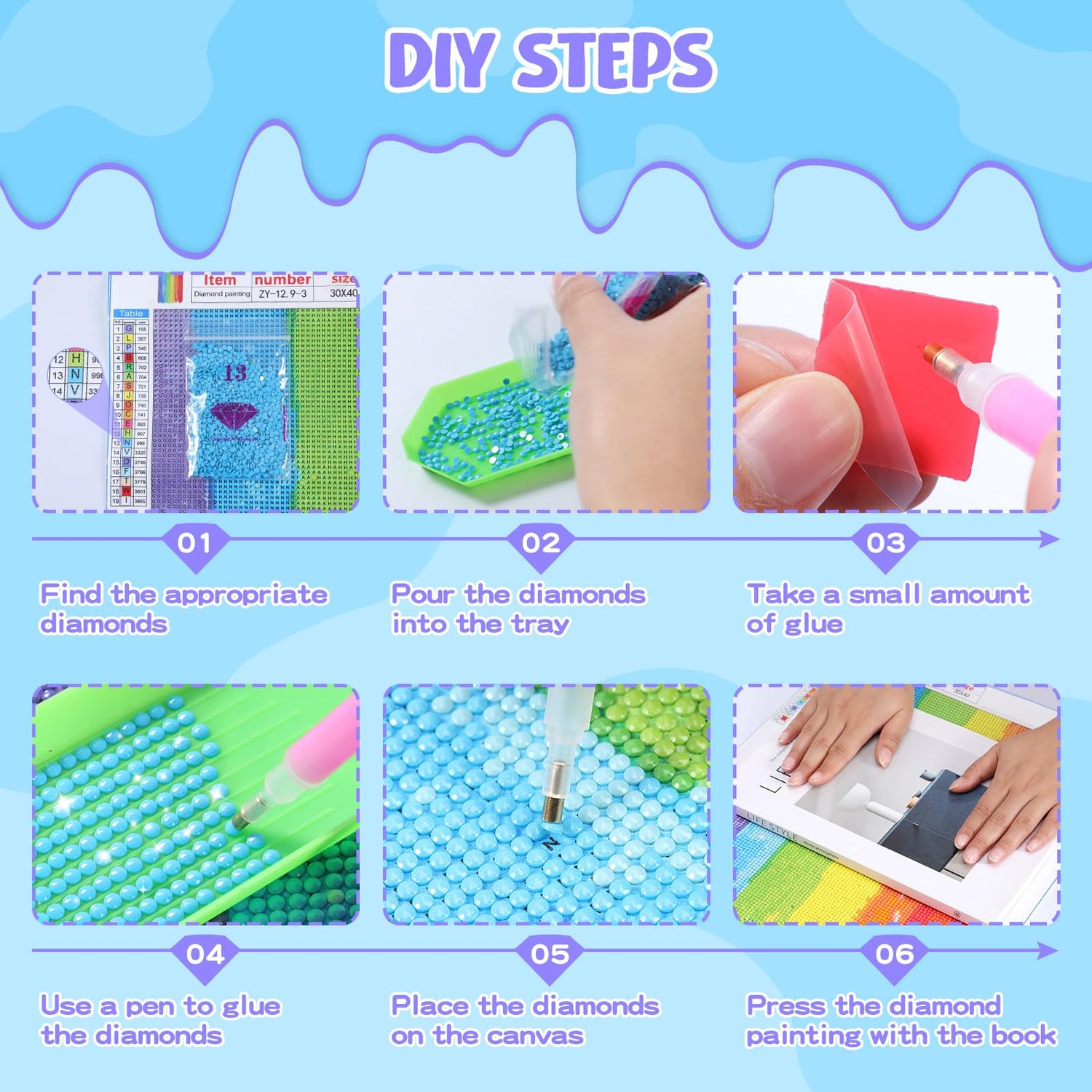 - [Sparkling Colorful Diamond] Each diamond painting kit comes with an extra 30% of diamond dots and each small diamond is cut at multiple angles to make the diamond sparkle at different angles. It can be easily used with diamond pens and glue blocks. Suitable for almost adults, seniors