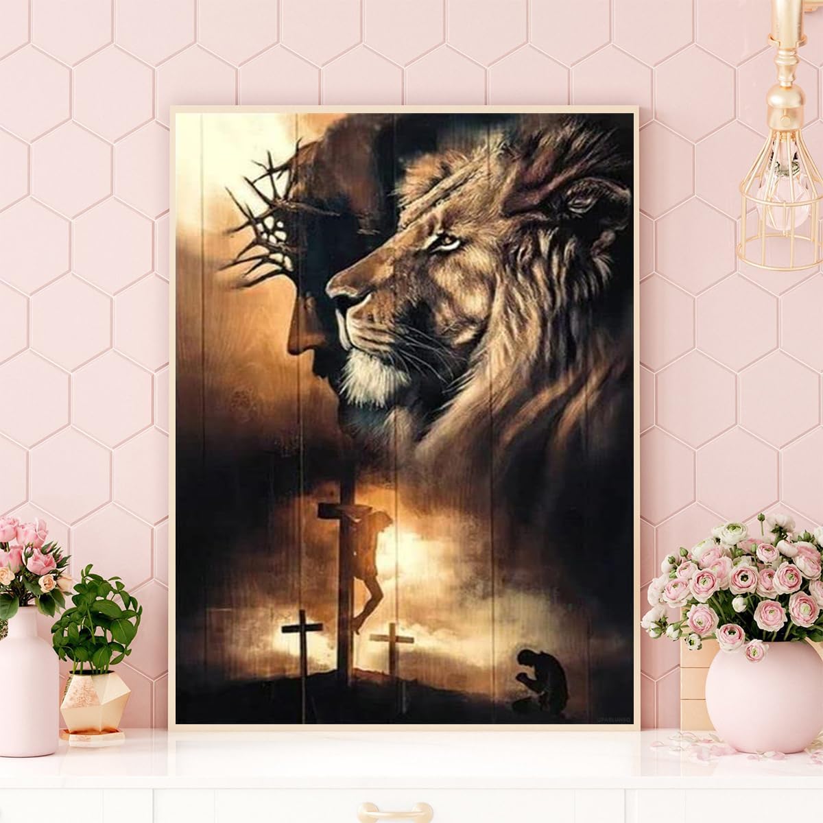 UPABLUNSO Jesus Lion Cross Religion Diamond Painting Kit for Adults Full Drill Diamond Art Painting by Number Kits Gem Art Wall Home Decor 12x16 inch