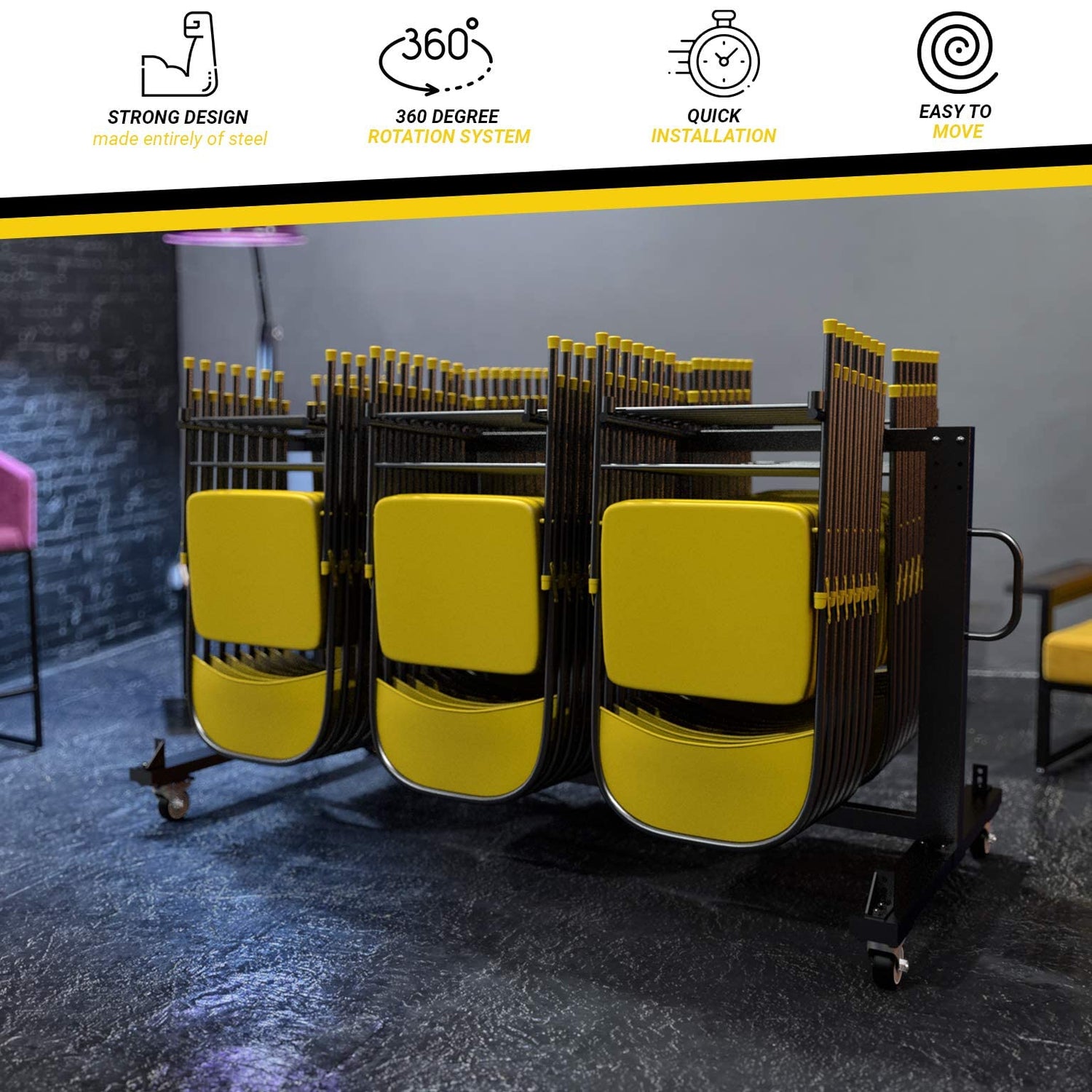 UPGORILO Folding Table and Chairs Cart - Innovative Mobile Chair Dolly, 42 Folding Chairs Capacity, Heavy Duty Metal Folding Chair Rack with Rubber Locking Wheels
