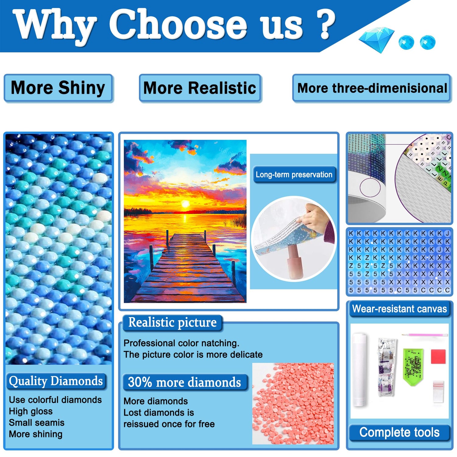 - 【5D Diamond Painting Kits】12"X16" Sunset Bridge Diamond Painting Has Complete Diamond Art Accessories and Tools. Following Tools Are Included: 1*Hd Painting Canvas, 1*Diamond Pen, 1*Cube Diamond Tray, 1*Red Glue Clay (0.7874 inches x 1.5748 inches), 1*Pen Grip, 10*Plastic Bags For Putting Diamonds, And Enough Colorful Round Diamonds. For Each Kit We'll Provide 20% Diamond More Than Need.