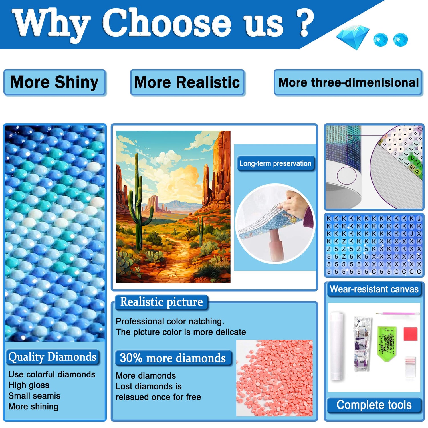 - 【5D Diamond Painting Kits】12"X16" Desert Landscape Diamond Painting Has Complete Diamond Art Accessories and Tools. Following Tools Are Included: 1*Hd Painting Canvas, 1*Diamond Pen, 1*Cube Diamond Tray, 1*Red Glue Clay (0.7874 inches x 1.5748 inches), 1*Pen Grip, 10*Plastic Bags For Putting Diamonds, And Enough Colorful Round Diamonds. For Each Kit We'll Provide 20% Diamond More Than Need.