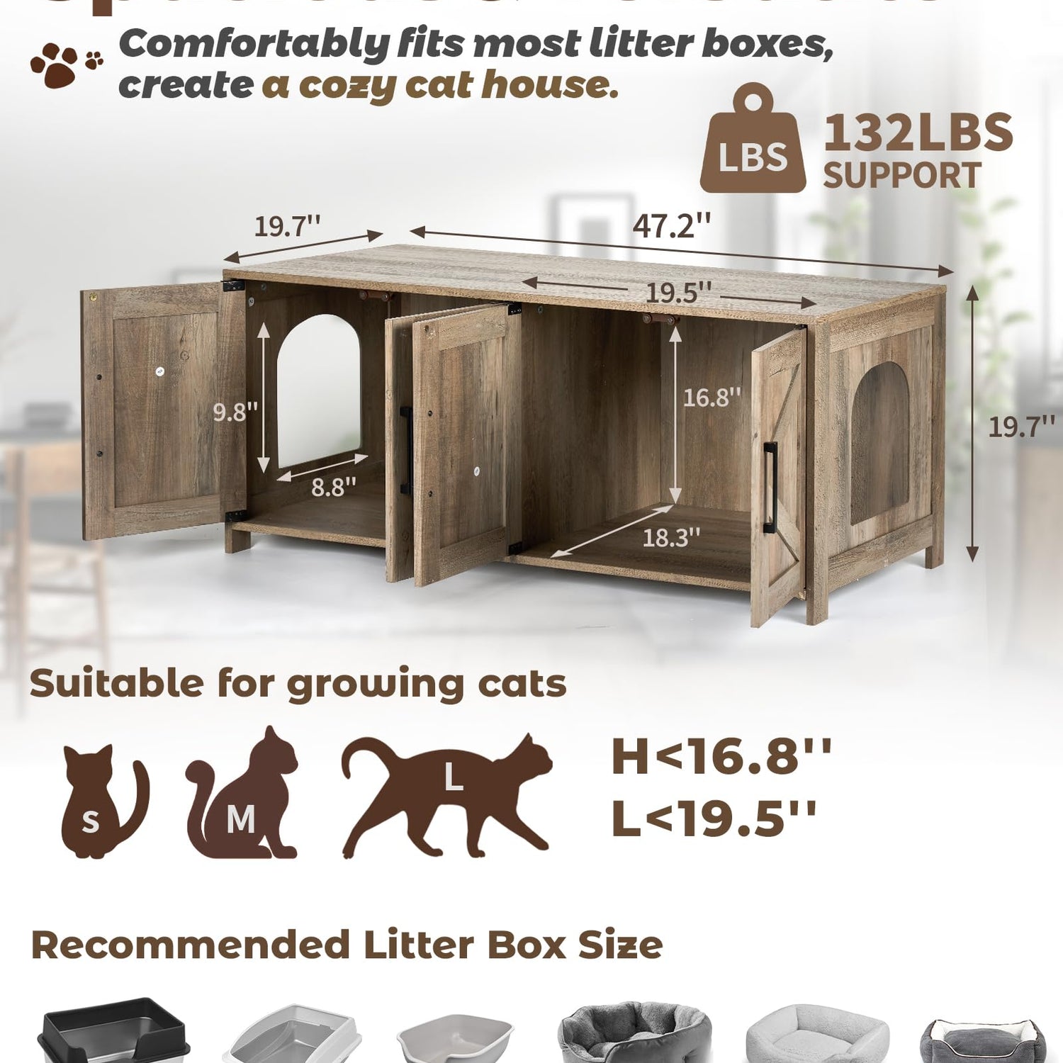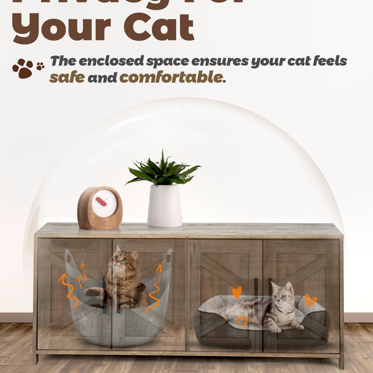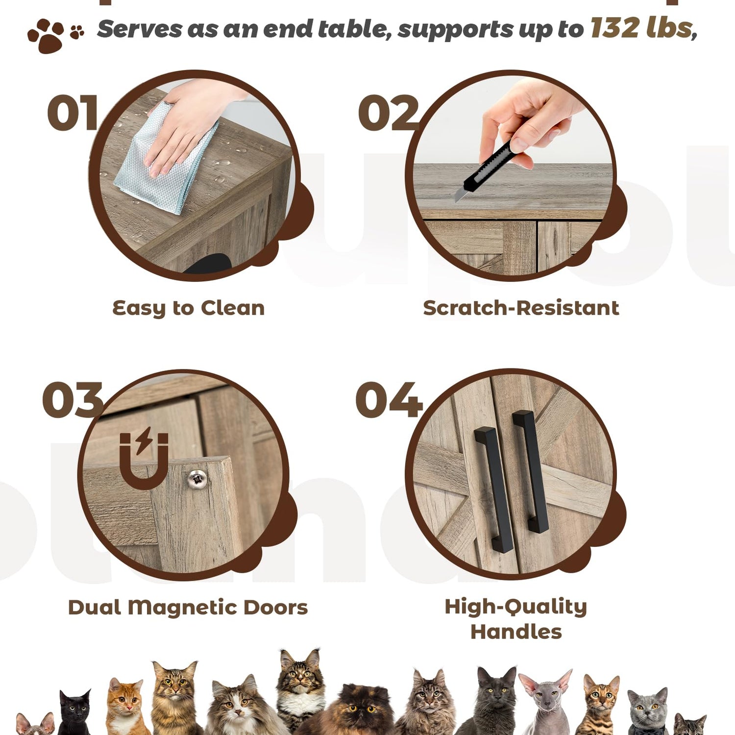 - ENHANCED ODOR CONTROL - Our hidden litter box includes built-in odor control features. The enclosed design helps contain unpleasant smells, ensuring your living space remains fresh. Regular cleaning is made easy with the wide-opening doors, providing quick access for scooping and maintenance.