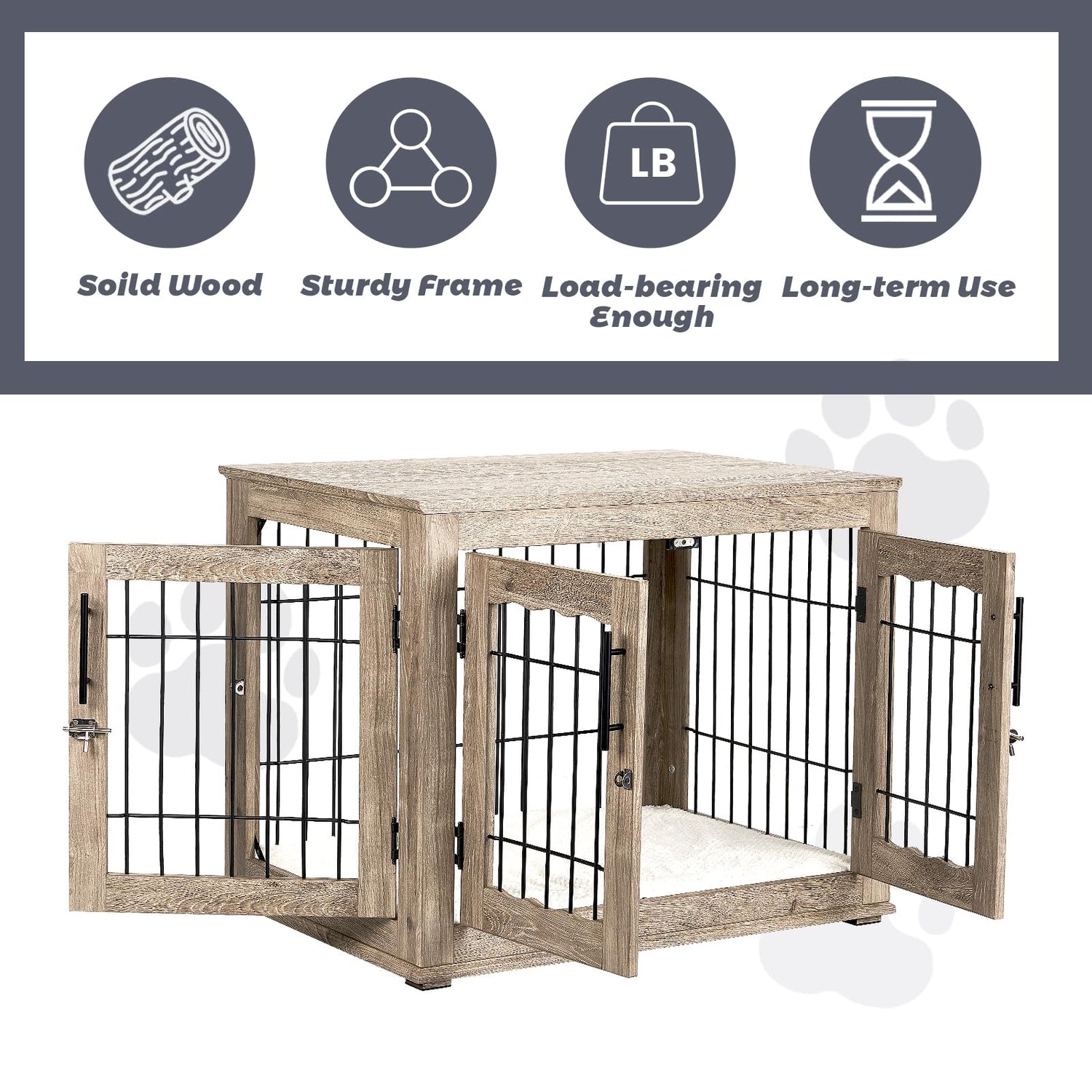 - Elegant and Versatile: This is a beautiful piece of furniture that can also be used as a dog crate. You can place it in your living room or entryway. It has an elegant appearance as a side table, coffee table, or bedside table.