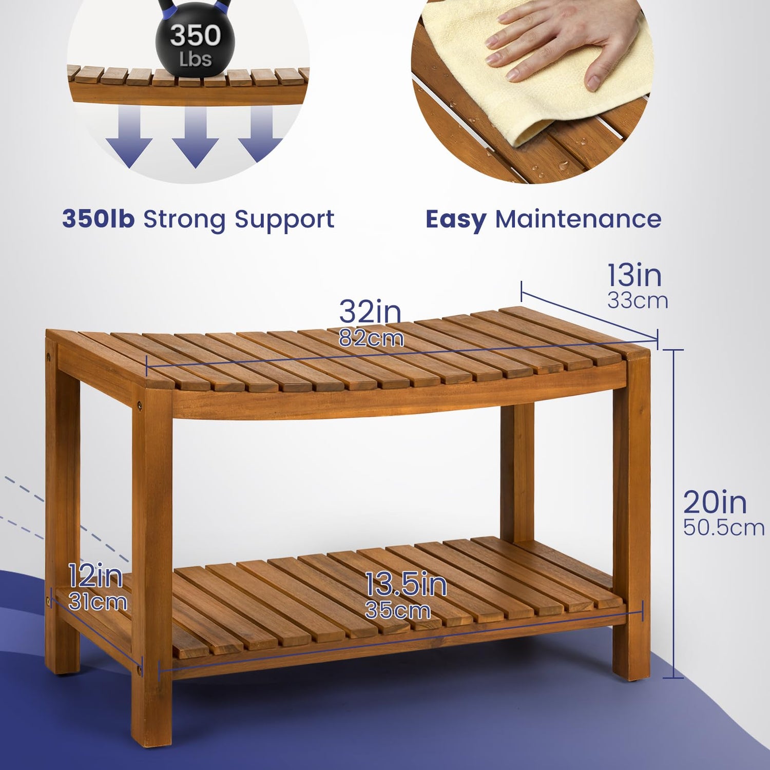 Upolana Teak Shower Bench, 32" Solid Wood Shower Stool for Inside Shower to Sit On, Wooden Bathroom Shower Seat Waterproof