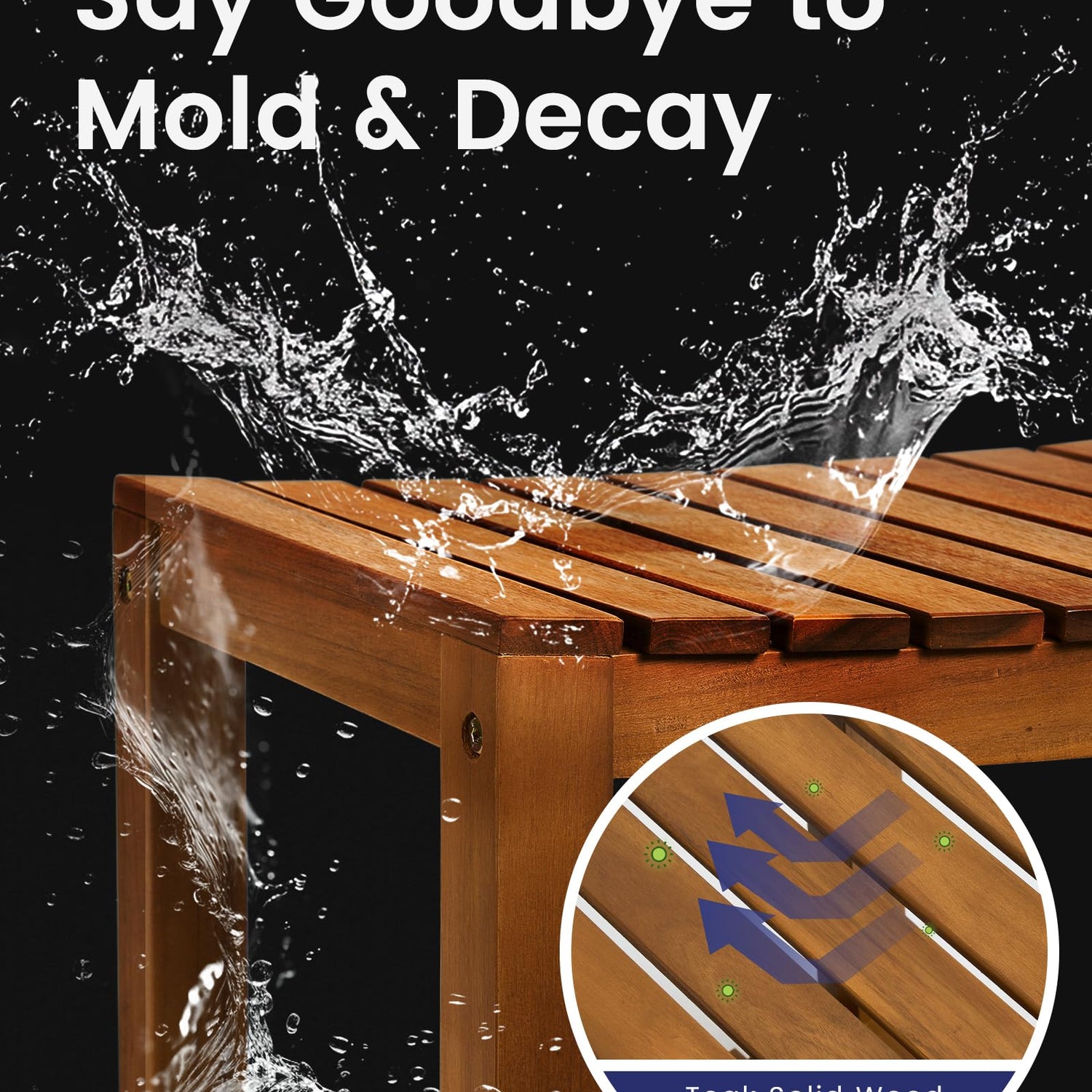 - STYLISH ACCENT FOR ANY SPACE - Enhance your surroundings with versatile elegance. The rich brown stain on the 100% solid teak wood shower bench adds a touch of sophistication to any setting. Whether as a patio or poolside accent or a convenient seat in your bathroom, this teak bench seamlessly blends style and functionality.