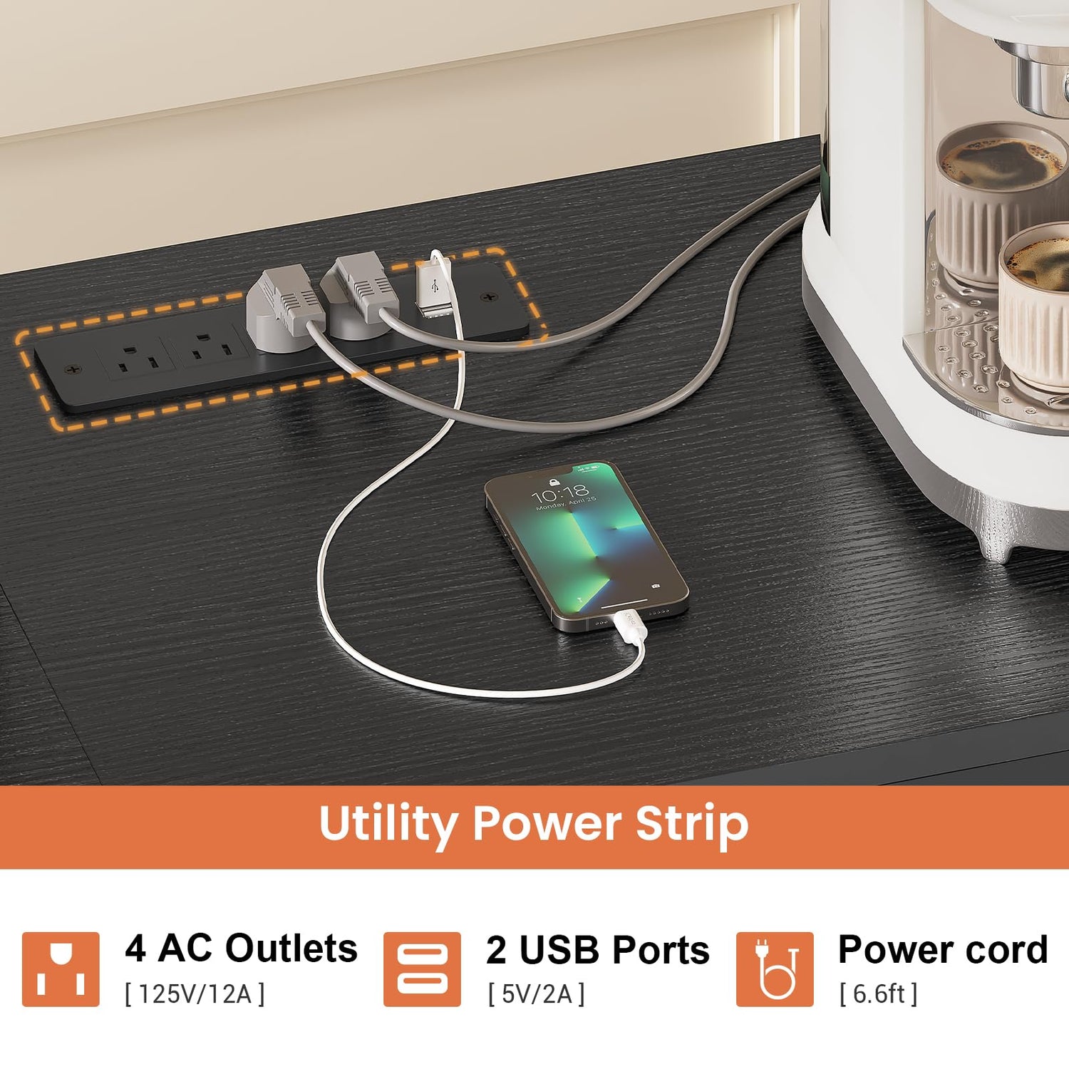 - 【Useful Built-in Power Strip】The bakers rack with power outlet has 4 AC outlets and 2 USB sockets, which can meet the simultaneous power needs of multiple appliances such as microwave ovens, bread machines, coffee machines, and mobile phones.