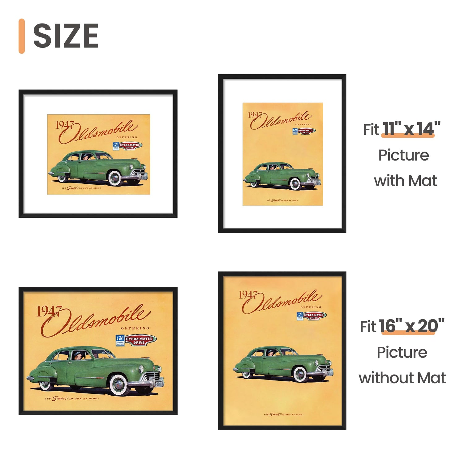 - DOUBLE SIZE DESIGN: Black 16x20 inch picture frame perfects for Pictures 11x14 with Mat or 16x20 Without Mat.