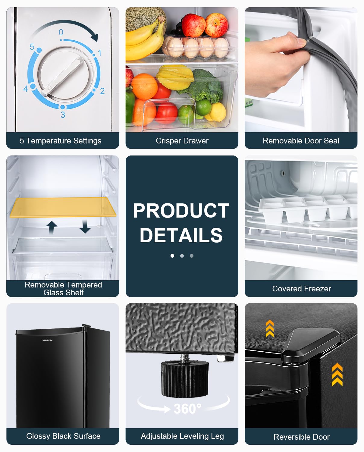 - Crisper Drawer & Removable Shelves: Features a crisper drawer to keep your greens and fruits fresh and juicy. The small fridge storage space is adjustable to practical uses with removable shelves. Arrange these shelves how you see fit and you’d be amazed how much the small fridge can stores