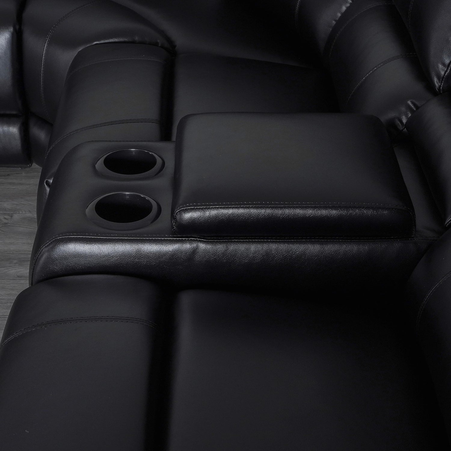 - Cup Holders & Console Storage: Our symmetrical sectional couch has 2 coffee tables. Each console has 2 cup holders and a hidden storage space for storaging coffee supplies. You can also close the lid of the storage box to use it as a platform for placing your coffee pot.