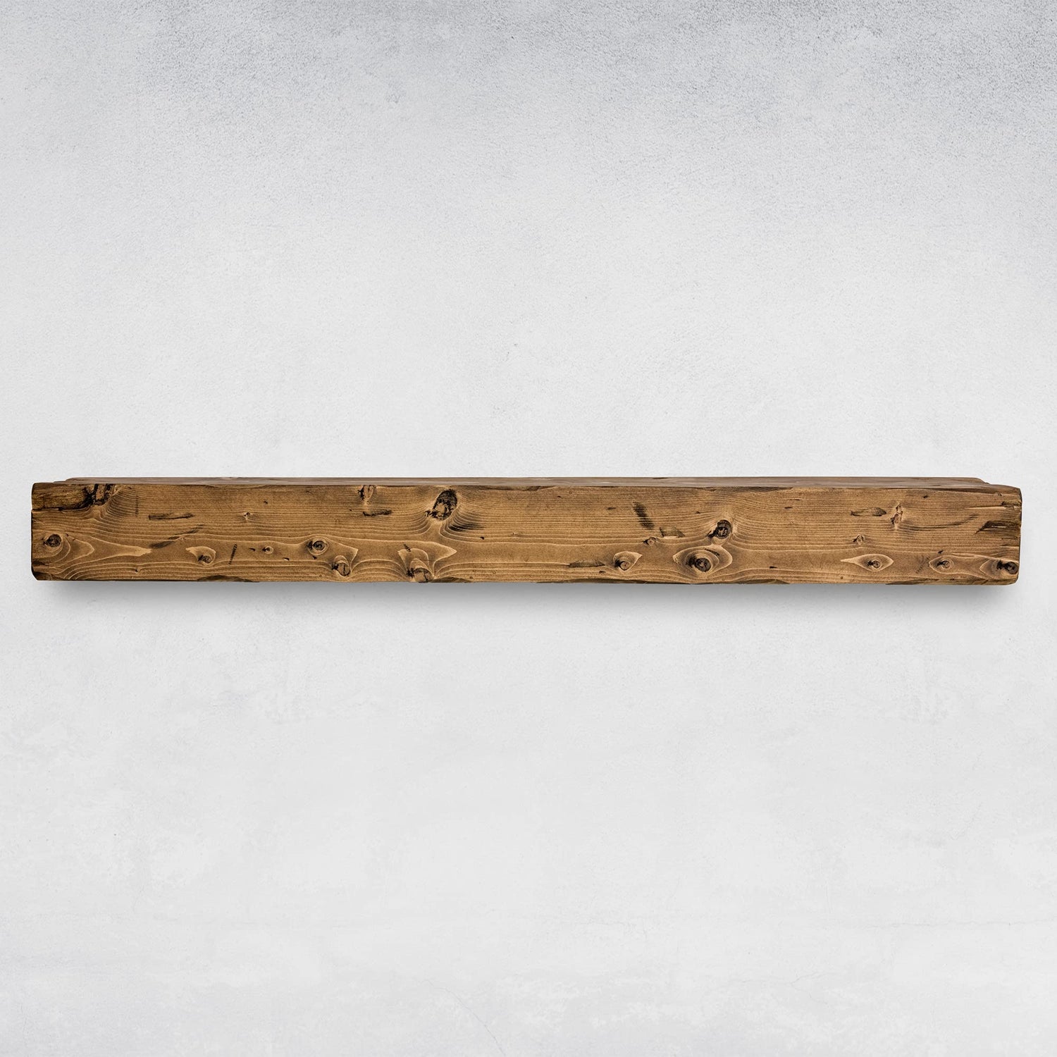 Details: Our distressed mantels are perfect for when your fireplace needs to show some serious character. With heavy gouging, your mantel will look like it's got more than a few stories to tell. This is a handcrafted hollow fireplace mantel. Our mantels are hand-made with love and passion. These mantels are as beautiful as they are useful, robust, light, and elegant. The distressed look is achieved by hand with attention to detail. As a result, no two beams are the same and your beam will be one-of-a-kind. Dimensions may vary slightly from selected, due to the nature of the wood and the time effect on it. We use pine boards for our distressed mantels. The final product might appear a bit lighter or darker because of the lighting and nature of the wood.