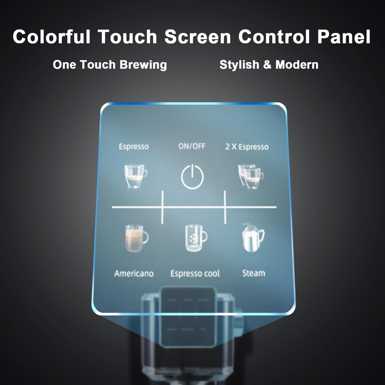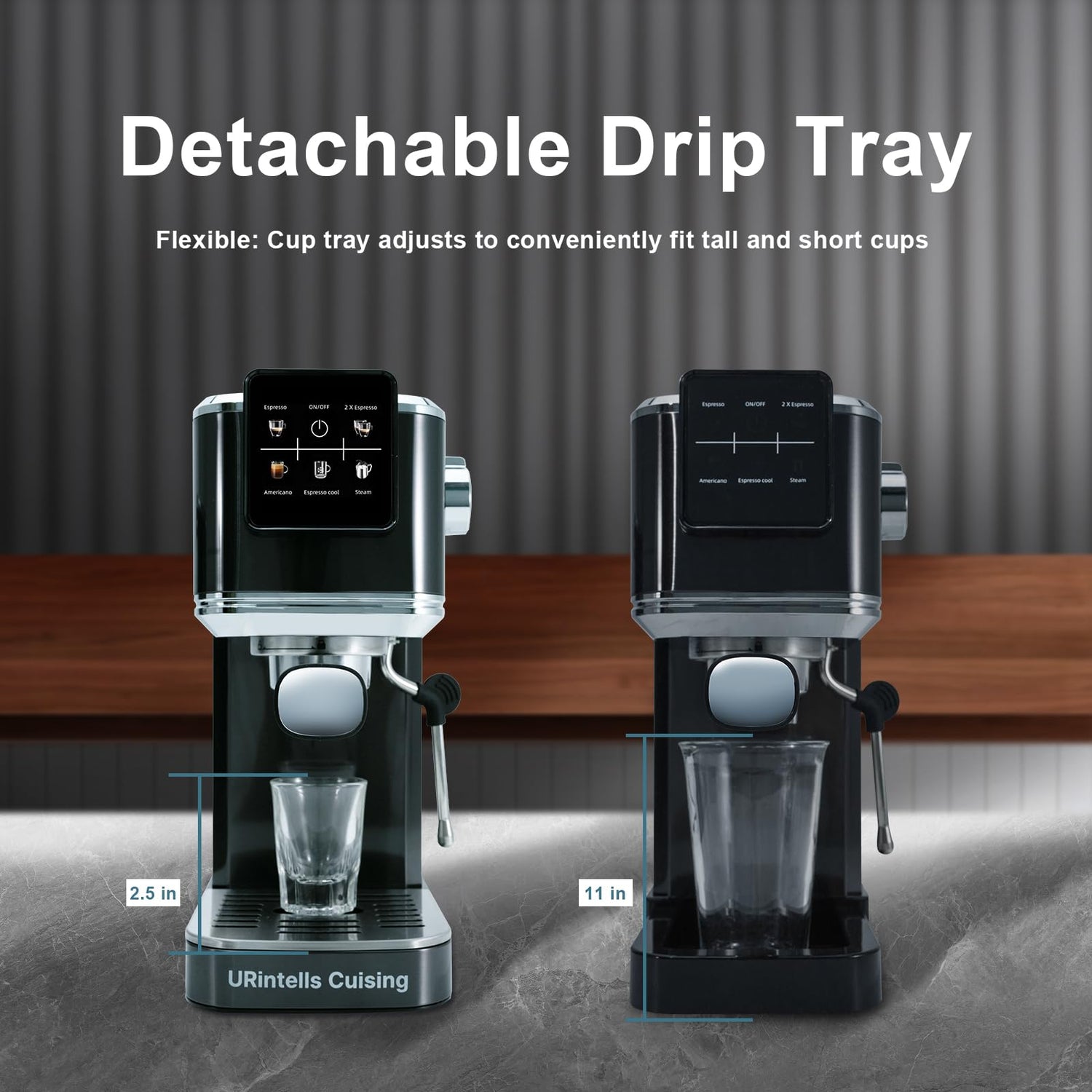 - Touch Screen Espresso Coffee Machine For Home: The URintells Cuising espresso coffee maker is equipped with a user-friendly colorful touch screen control panel that is stylish, modern and easy to operate. With intuitive and clear display, you can easily choose and prepare all your favorite espresso-based coffees at the swipe of your finger, such as espresso, cappuccino, latte, americano, and iced coffee. Using a espresso cappuccino machine has never been easier