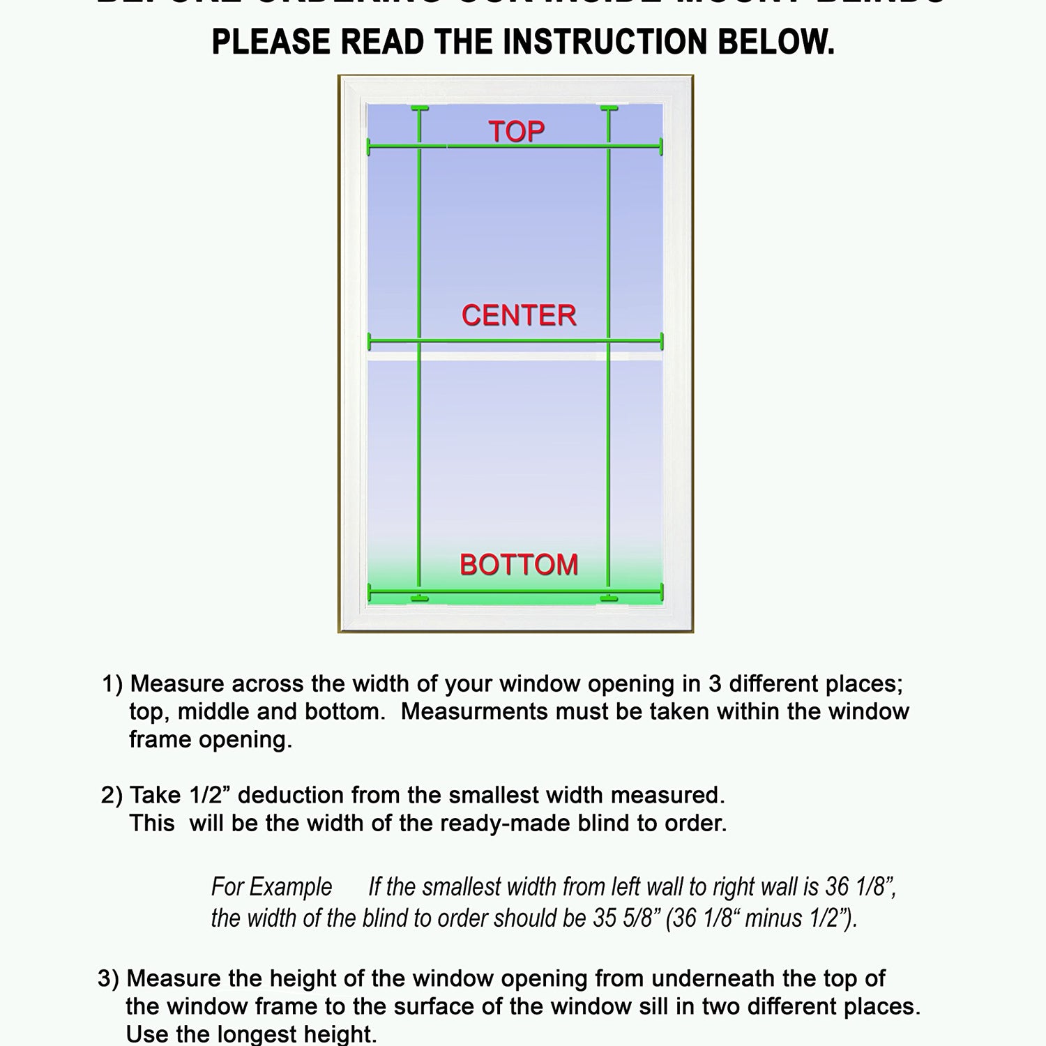 - Fit a window 35.5" wide x 60" high (Actual blind size is 35" x 60").
