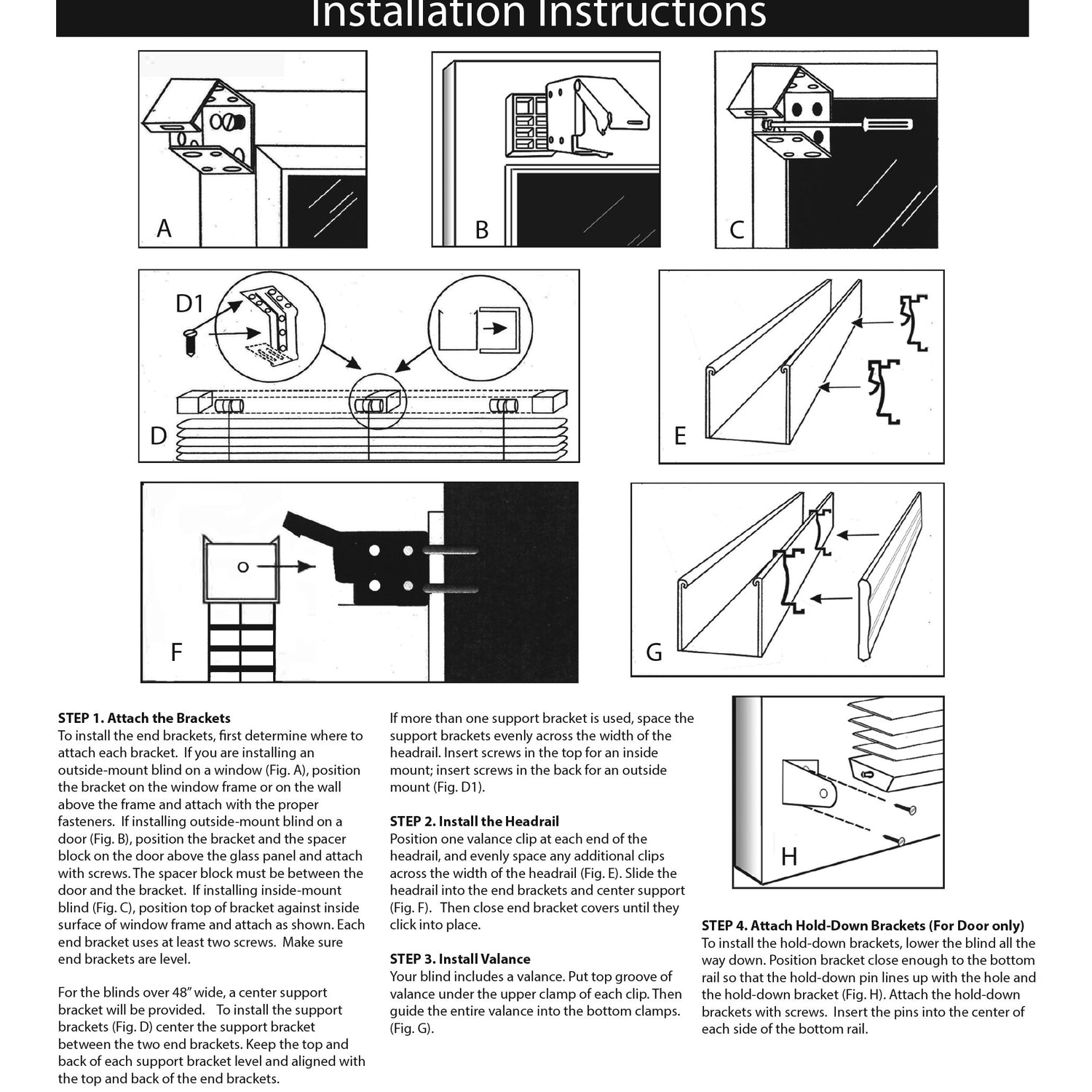 - The blinds come with installation instructions, mounting brackets, a tilt wand, a 3 1/4" decorative valance (Ending corner valances are not included), valance clips, and screws.