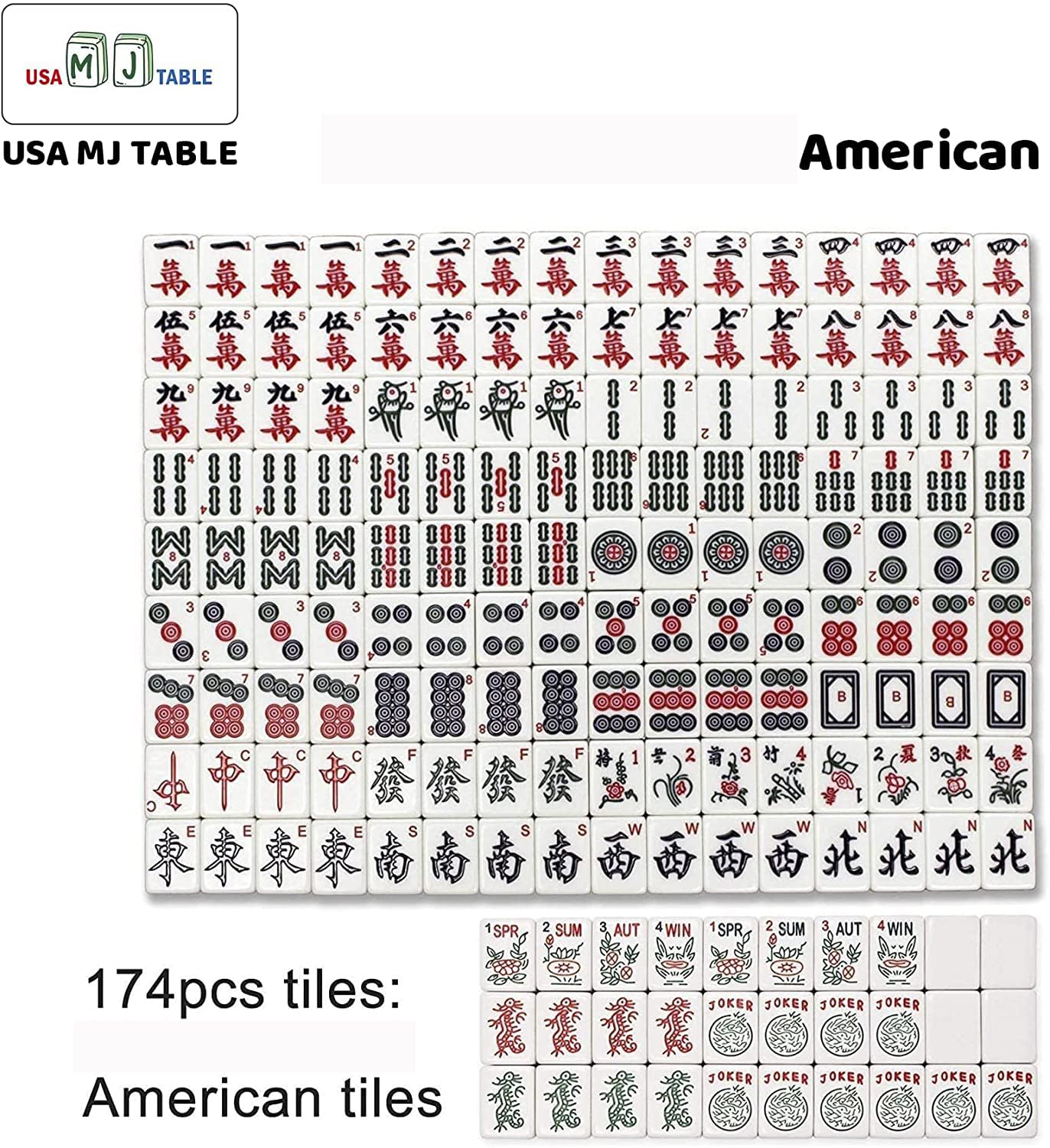 - High quality auto mahjong table comes 2 sets of 174pcs 39mm(height) x 28mm(length) x 20mm(width) standard size magnetic tiles (1 Blue & 1 Green), built-in Reversible Hard Table Cover