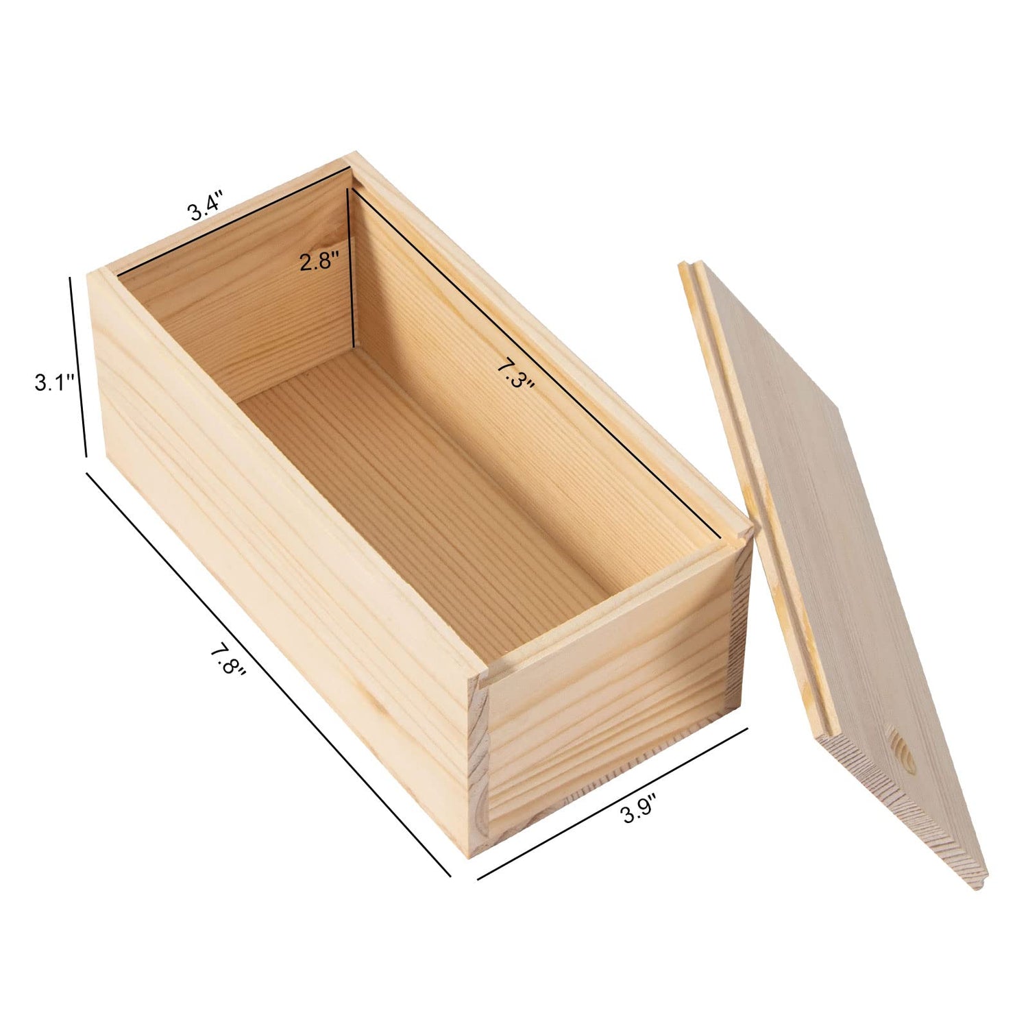 Details: Our Unfinished Wooden boxes will meet your daily storage and stash, treasure display, home decoration, desktop storage, DIY handicraft and gift giving needs. With this box, you can imagine: convenient storage, artistic decoration, jewelry showing, desktop plants, educational blank box for kids, a unique gift and pleasure feeling.Feature:100% natural pine woodSlide top lidSolid and durableSmooth and flat surface for craftsSpecial DIY gift Specifications:Material: WoodColor: Wood colorSize: Approx. 7.9'' x 3.9'' x 3.1''Package includes:1 x Unfinished Wooden Box