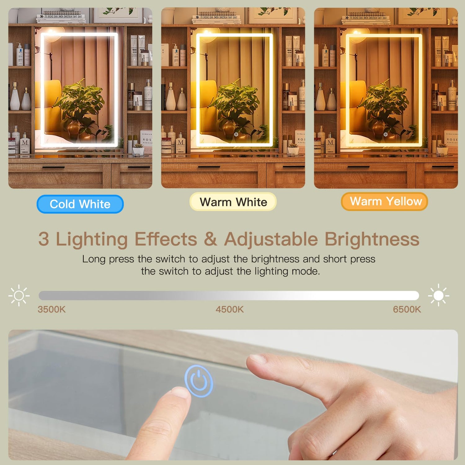 - ⭐【3 Color Lighting Modes】usikey vanity desk built-in 3-color LED light, through short click on the touch button, can choose the light mode: natural, warm or cold light, you can also adjust the brightness of the lights by long pressing the button, providing you a warm, bright visual effects. The makep vanity with lights is definitely a great partner for girls who love to do their hair and makeup!
