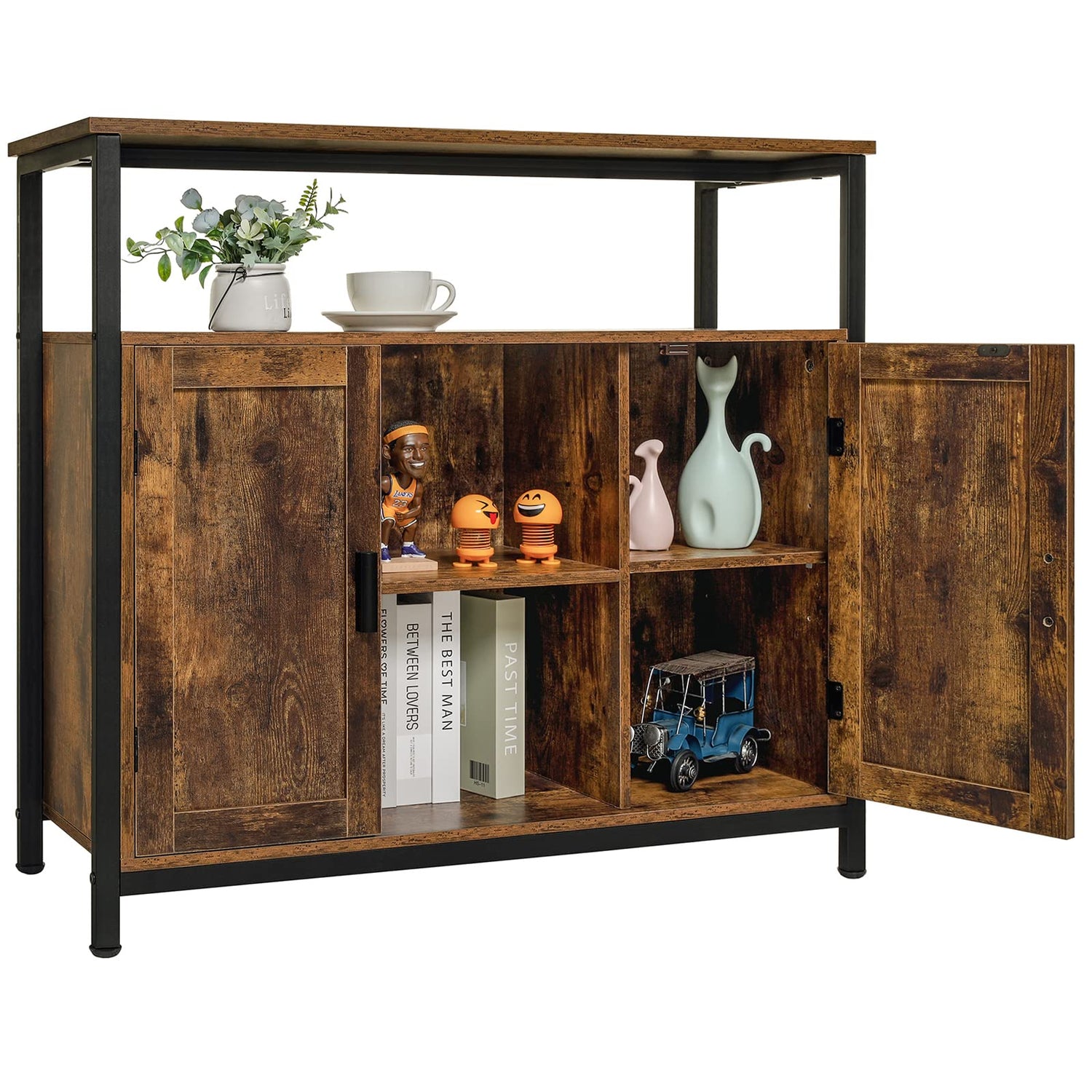 usikey Storage Cabinet with 2 Doors, Buffet Cabinet, Kitchen Cabinet with Adjustable Shelves, Open Compartment, Storage Sideboard, for Dining Room, Living Room, Rustic Brown