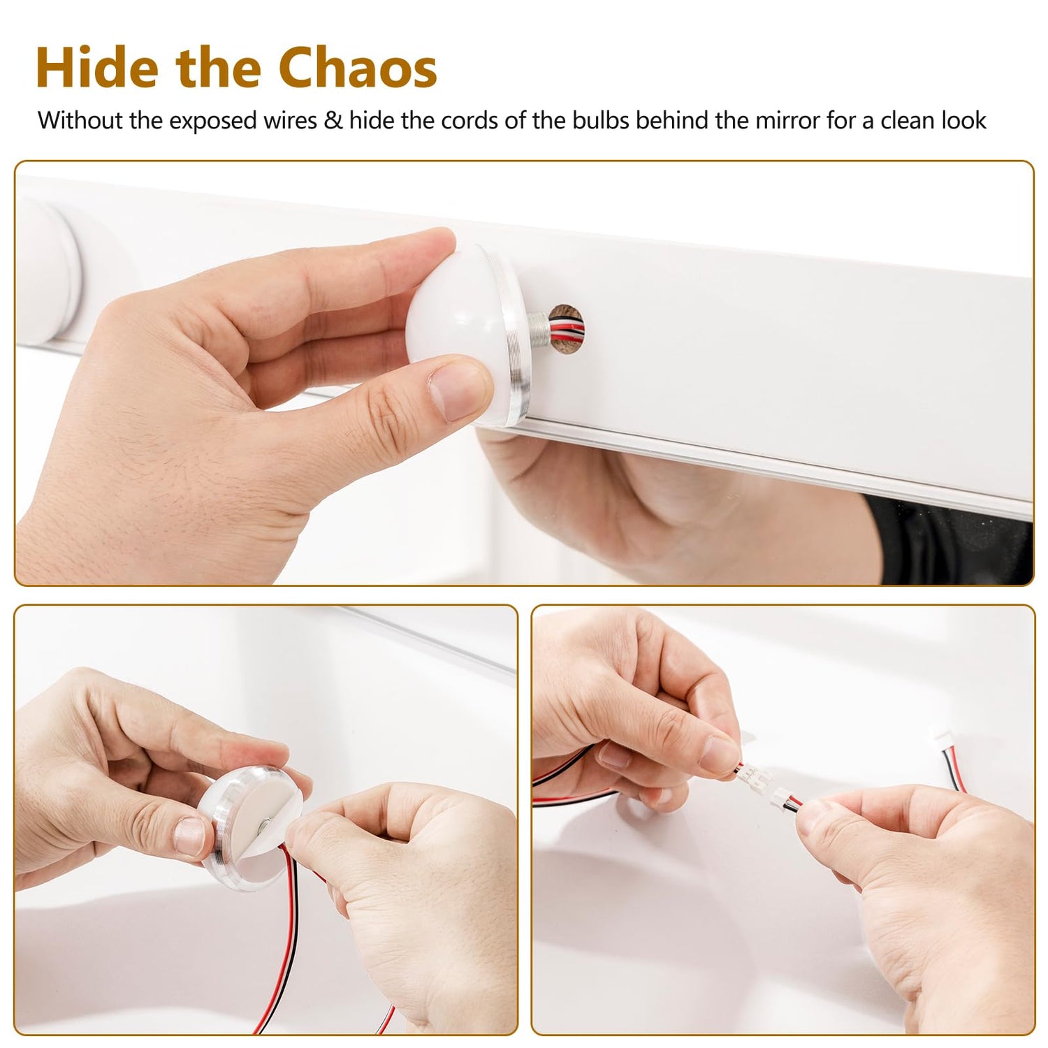 • Large Vanity Mirror with 10 Hollywood Light Bulbs: Tired of having to approach the tiny mirror to search for the best makeup angle like used to be? Try USIKEY large mirror vanity table(Mirror Size: 25.6"L*20.7"W) and now complete the beautiful makeup with an elegant posture. Fine selection of high-definition makeup mirror & 10 Hollywood Light Bulbs with color & brightness adjustable, easier to view your makeup details, perfect for daily makeup routine, selfies and live streaming