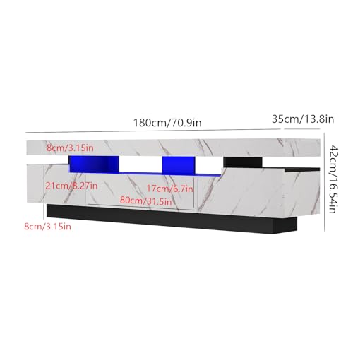 Uspeedy 70IN White TV Stand for 75/80 inch TV,Modern LED TV Stand for Living Room,High Gloss Entertainment Center with Storage Drawer,APP RGB Light,TV Console,Television Stands(Marbling)