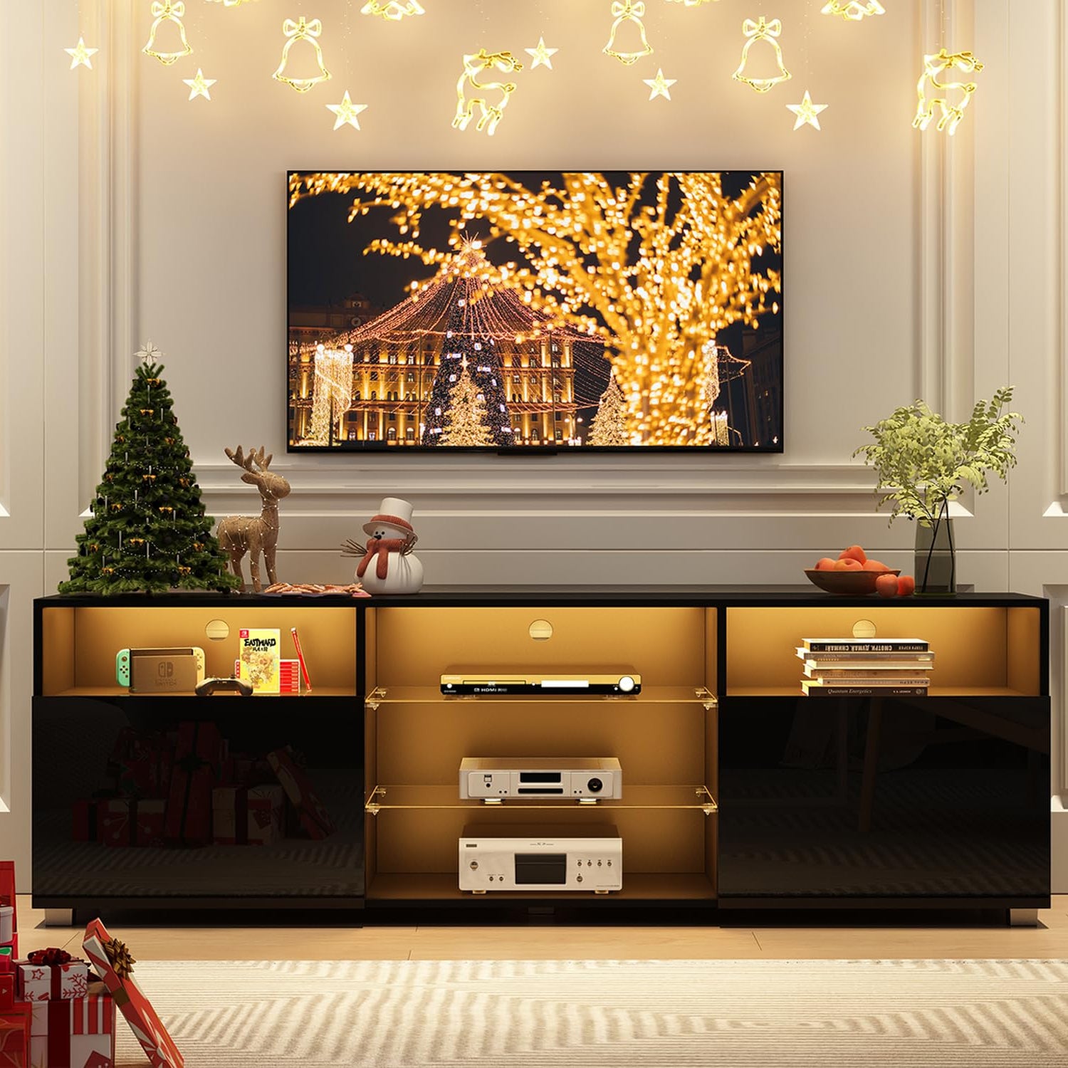 Uspeedy TV Stand,High Glossy LED TV Stand for 55 inch TV Stand,Modern TV Entertainment Center with Adjustable Storage Shelf,TV Console Table with RGB LED 20 Color Lighting(47IN Black)