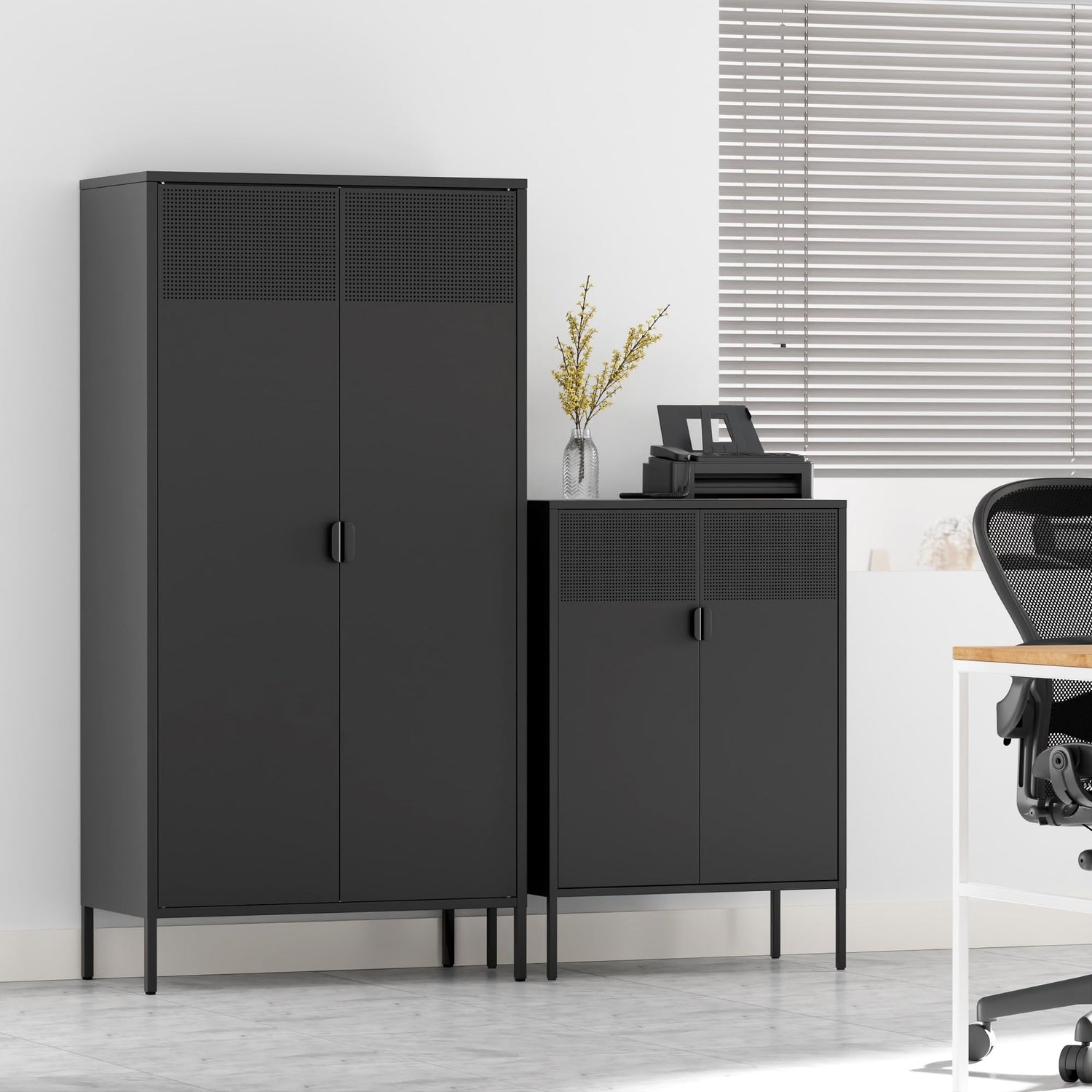 - ใ๐๐๐ง๐ญ๐ข๐ฅ๐๐ญ๐๐ ๐๐จ๐จ๐ซ๐ฌใThis metal storage cabinet features a unique door design, adding a modern touch to your space while allowing visibility and ventilation for stored items.