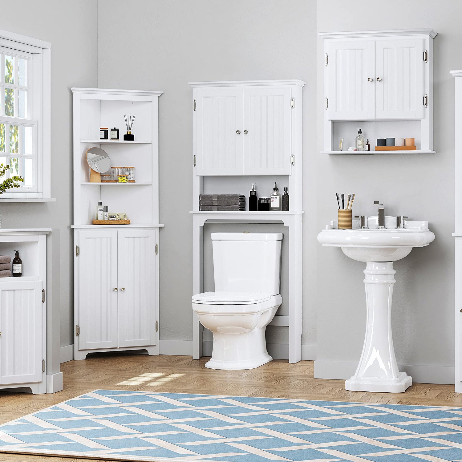 UTEX Bathroom Storage Over The Toilet, Bathroom Cabinet Organizer with Adjustable Shelves and Double Doors, Wood Bathroom Space Saver, White
