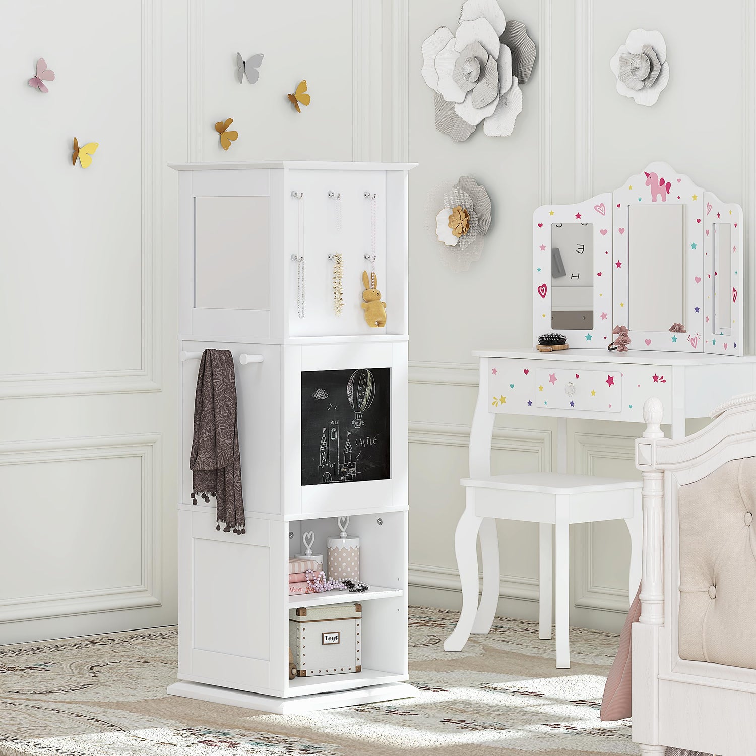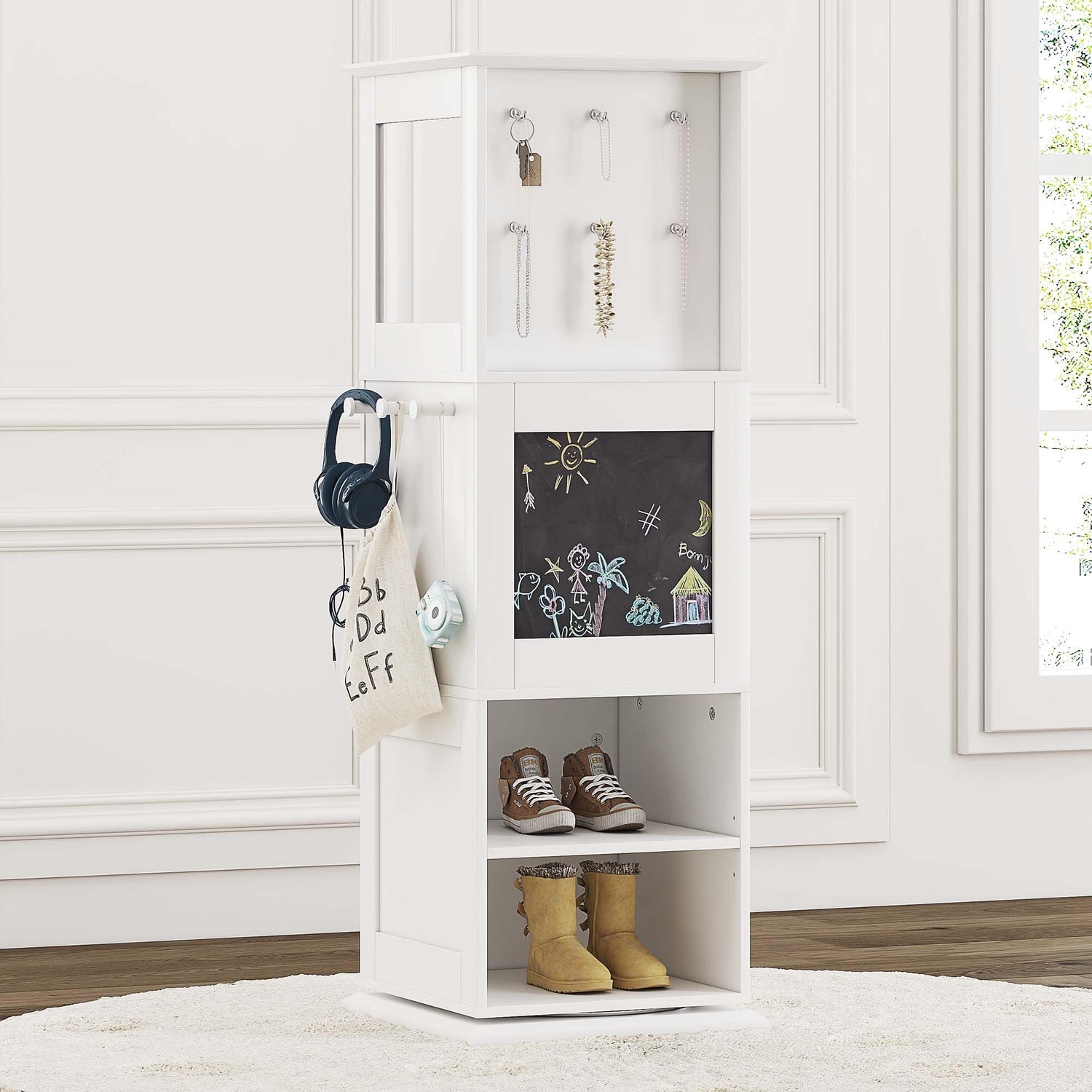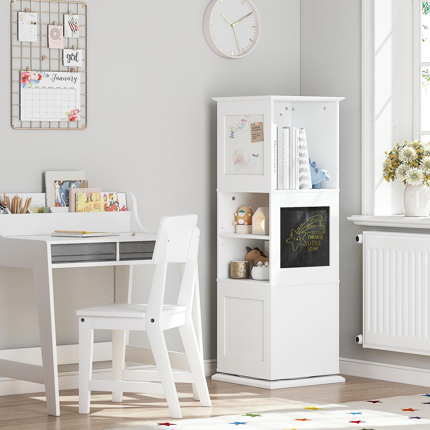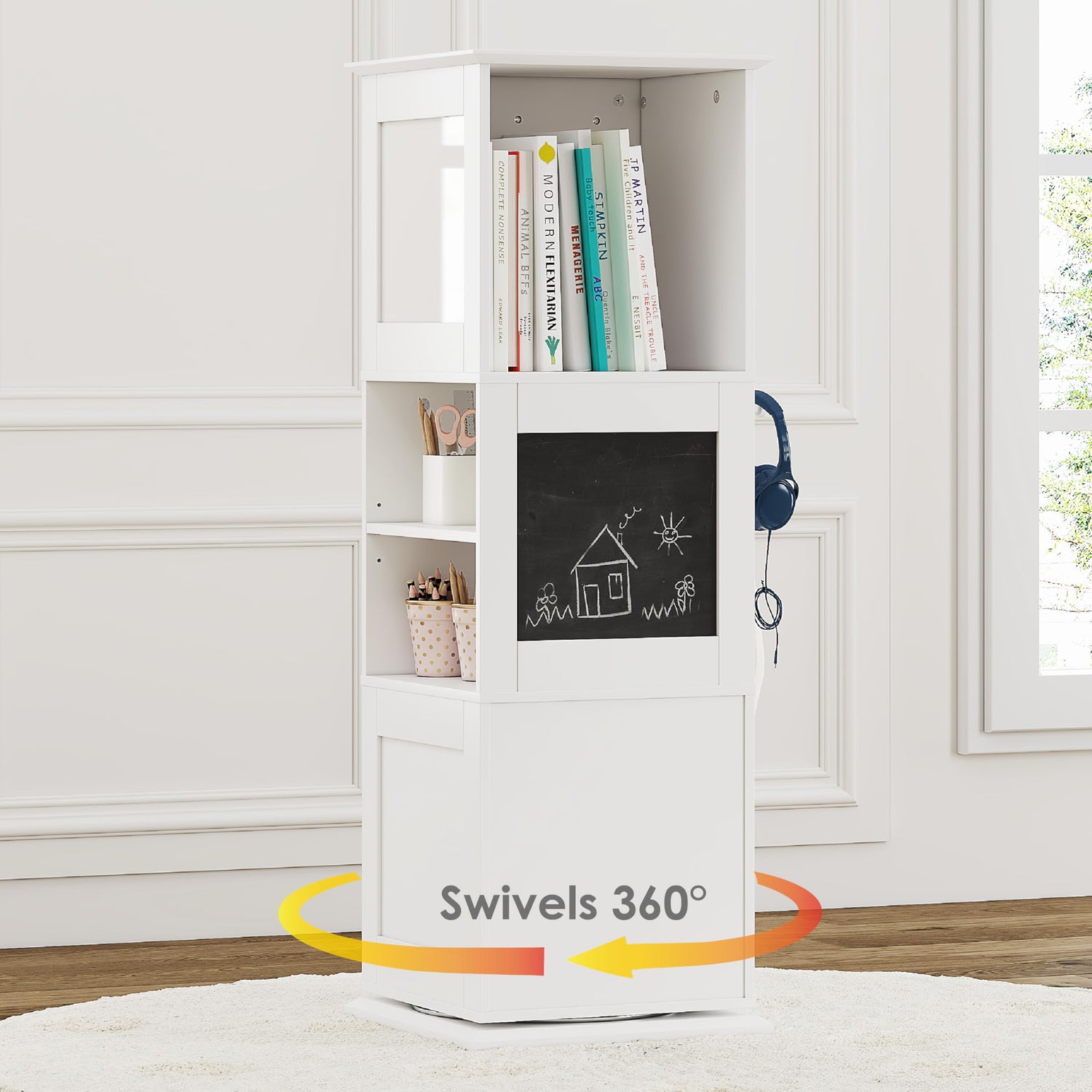 UTEX Kids Rotating Bookshelf Tower, 360 Display Revolving Bookcase with Blackboards and Hooks, 5 Tier Small Spinning Bookshelf for Kids Room, Nursery, Bedroom, Living Room, White