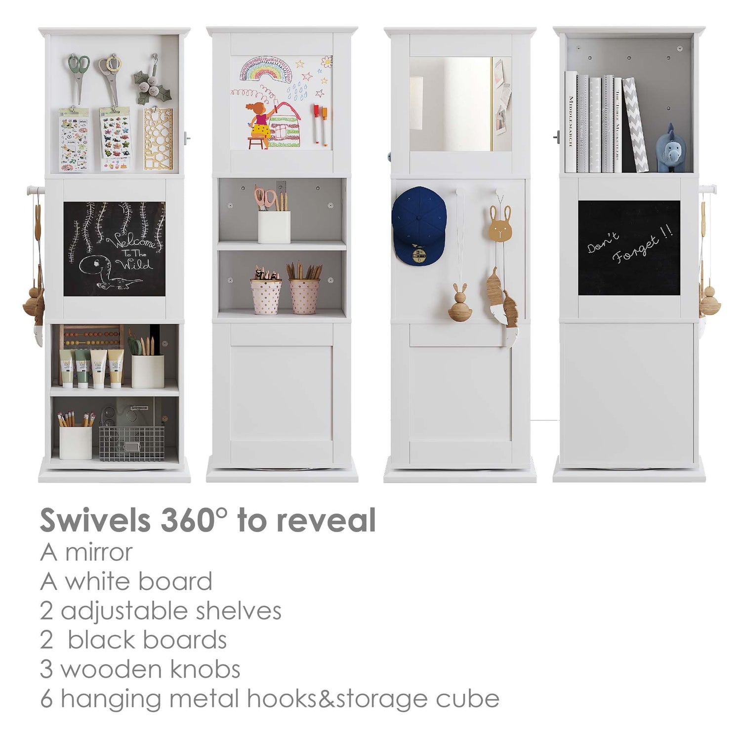 - Multifunctional Storage: Equipped with a storage cube, 2 adjustable shelves, 3 wooden knobs, and 6 hanging metal hooks, this rotating book shelf provides versatile storage solutions, ideal for bedrooms, living rooms, kids' rooms, nurseries, and playrooms.