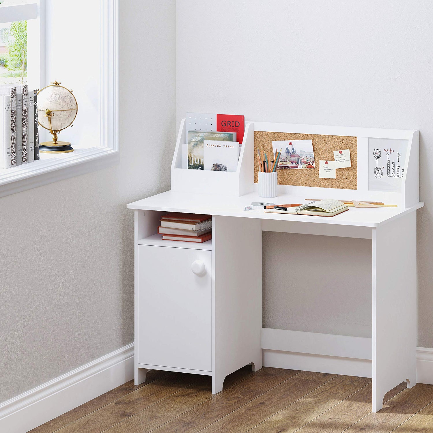 - GREAT WORK PLACE FOR KIDS: Our Kid’s Study Table with book storage Features Large, Flexible Workspace, A Bulletin Board Surface for Them to Pin Pictures, Drawings and Important Notes, 2cubbies for Organizing Books ,Pencils, or Other Supplies, Rounded Edges for Kid’S Safty and Water-Resistant Surface Treatment for Easy Daily Care.