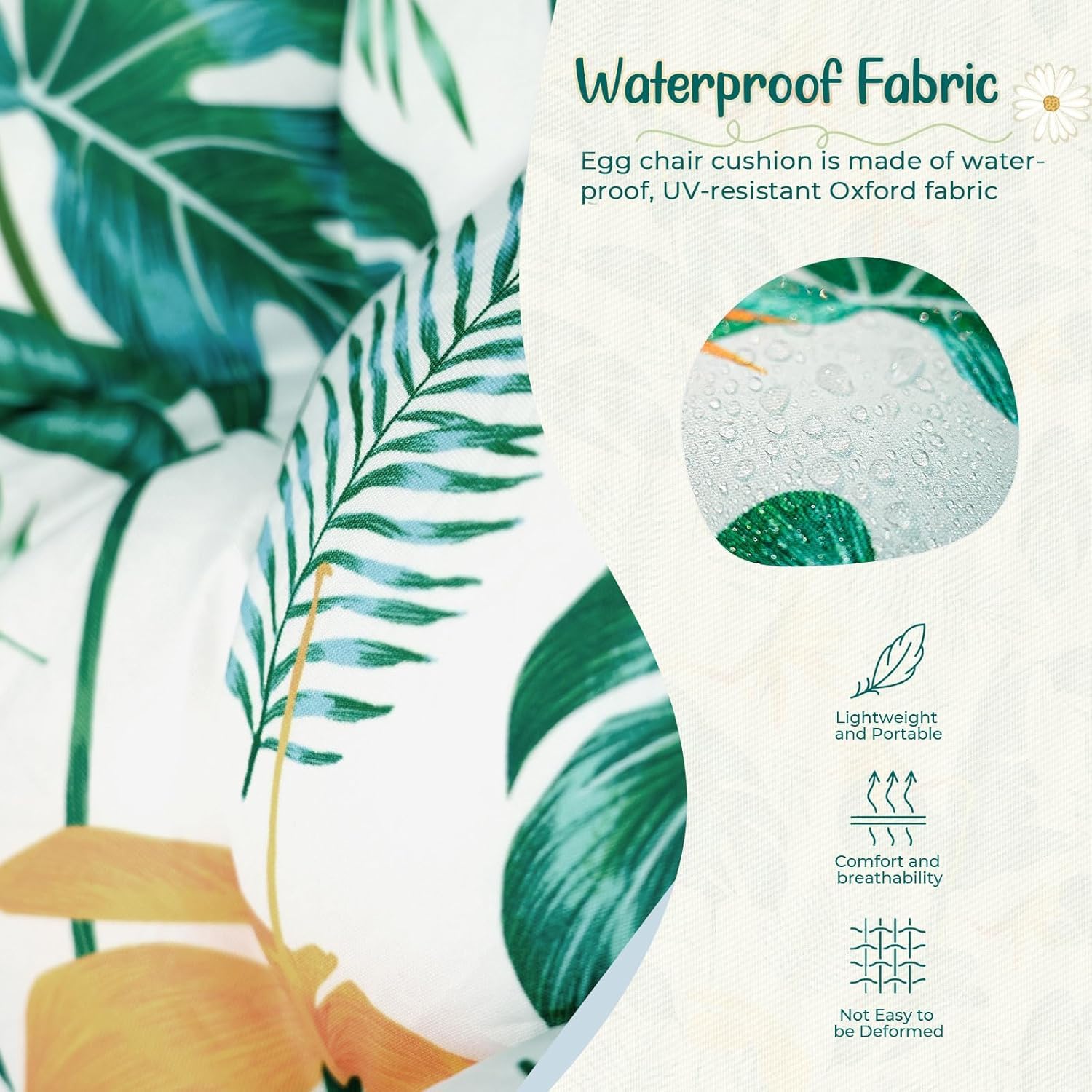 - Water-Proof Fabric: Uthem hanging egg chair cushion is made of high quality polyester fabric, UV-resistant Oxford fabric, which is soft and skin-friendly, durable and suitable for indoor outdoor patios, garden porches and sunrooms