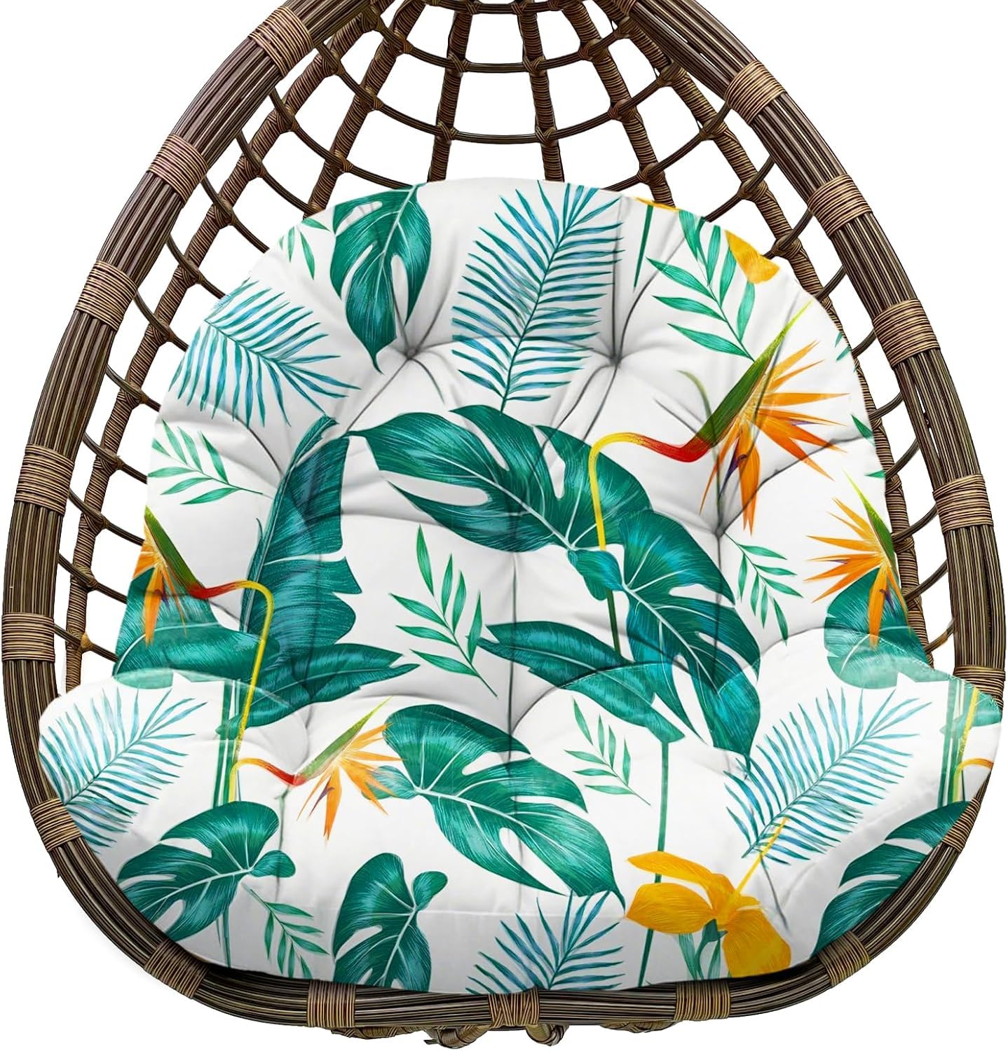 Uthem Waterproof Egg Chair Cushion Replacement Outdoor Hanging Egg Chair Cushion 47x35x7 Inches Thicken Chair Cushions with Ties, Yellow-Green Leaf