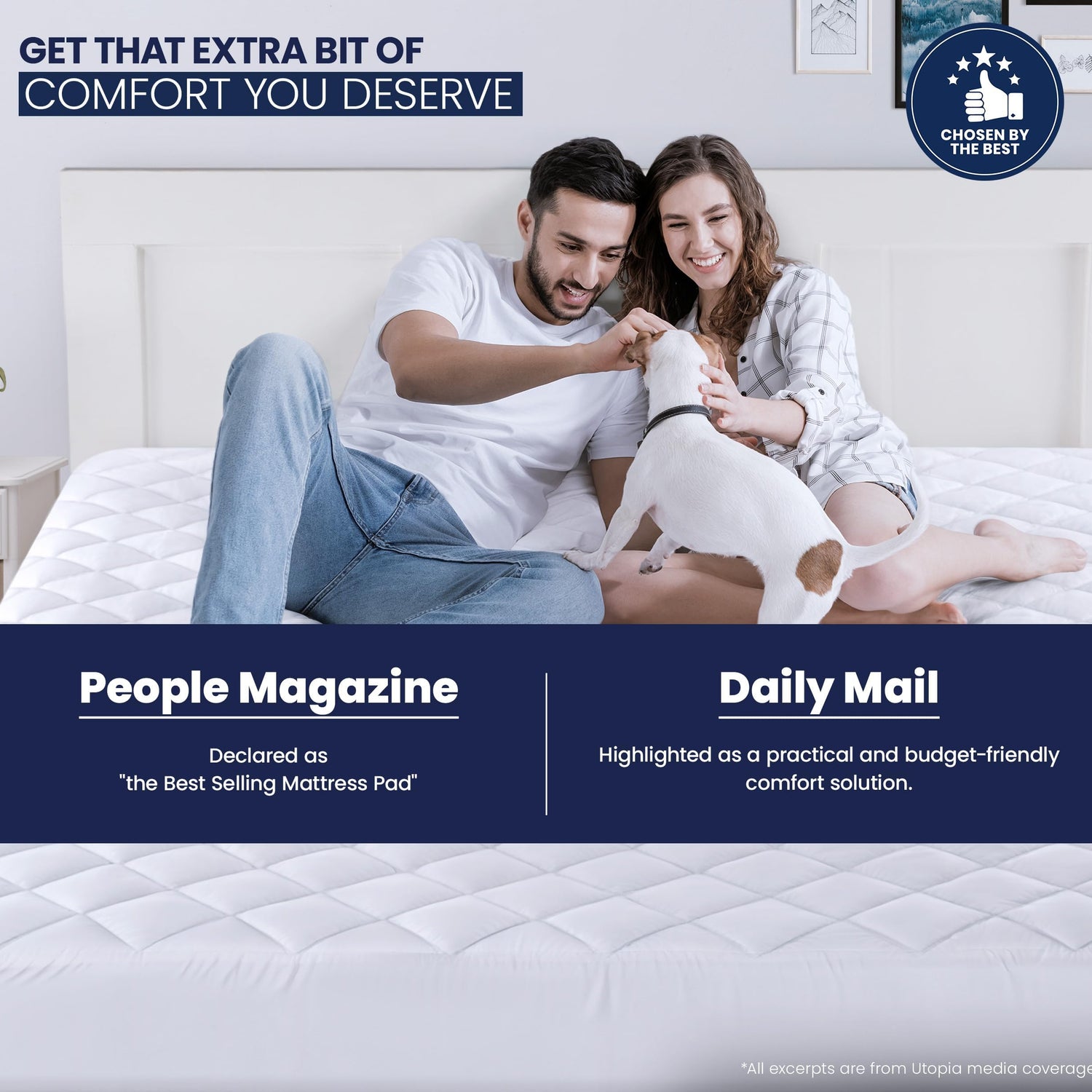 Utopia Bedding Quilted Fitted Mattress Pad, Full Size, Elastic Fitted Mattress Topper Protector and Cover Stretches up to 16 Inches Deep, Machine Washable (White)