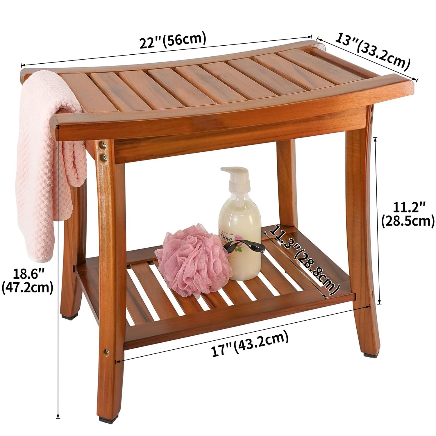 - Premium Teak Wood with Lacquer Finish: Teak shower bench with superior hardness exceeding bamboo, it enhances load-bearing and ensures lasting durability, indoors or outdoors. The lacquer finish features easy maintenance. Discover the perfect fusion of daily use and functionality
