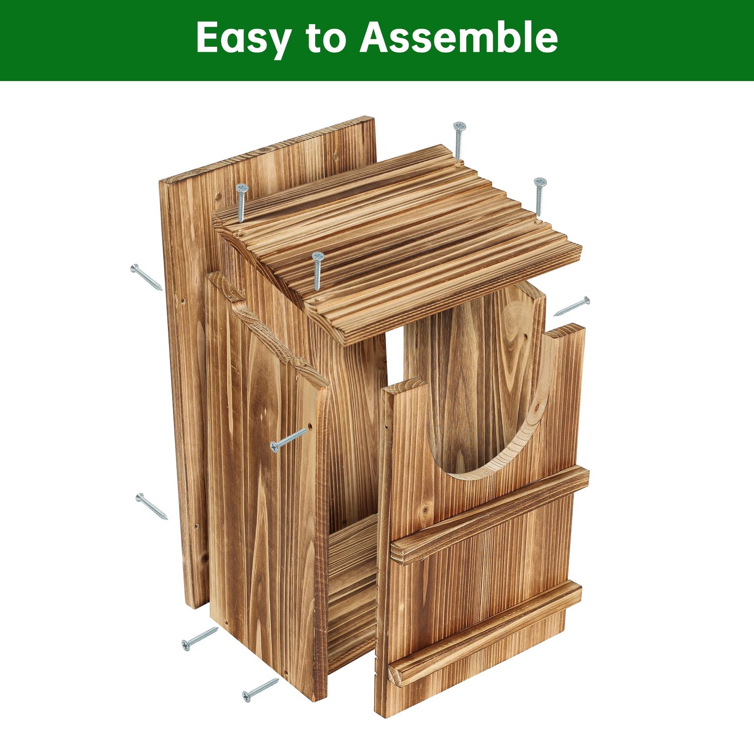 - Natural Materials: screech owl nesting box is made from cedar wood, providing a safe home for wild owls. Carbonization instead of paint protects wildlife, the environment, and promotes natural living. Each set comes with a bag of wood shavings.