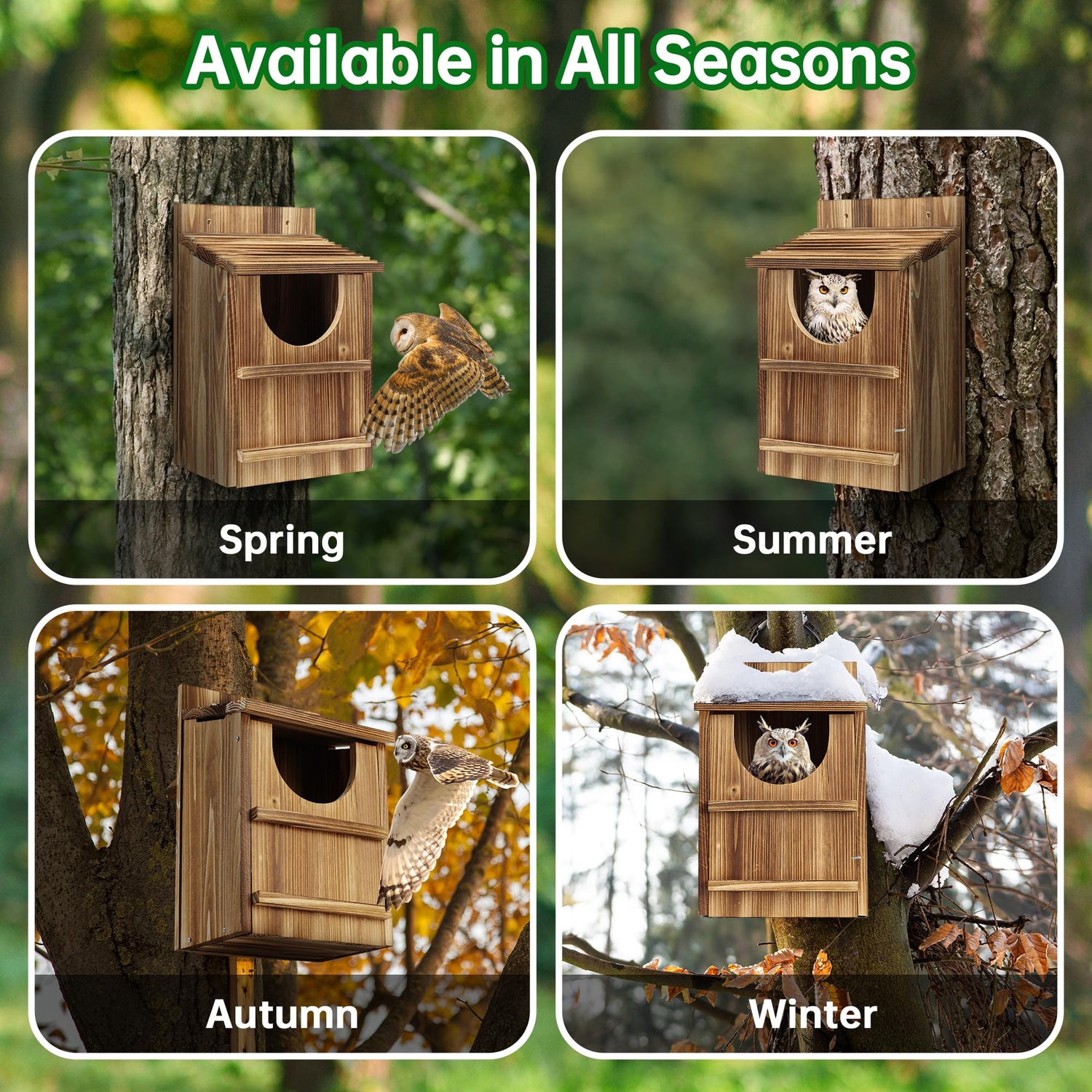 - Sturdy and Durable: Made from premium cedar wood,barred owl nesting box is built to withstand harsh weather, resisting moisture and decay. Reinforced joints and a solid structure ensure it provides a reliable and secure home for wild owls for years.