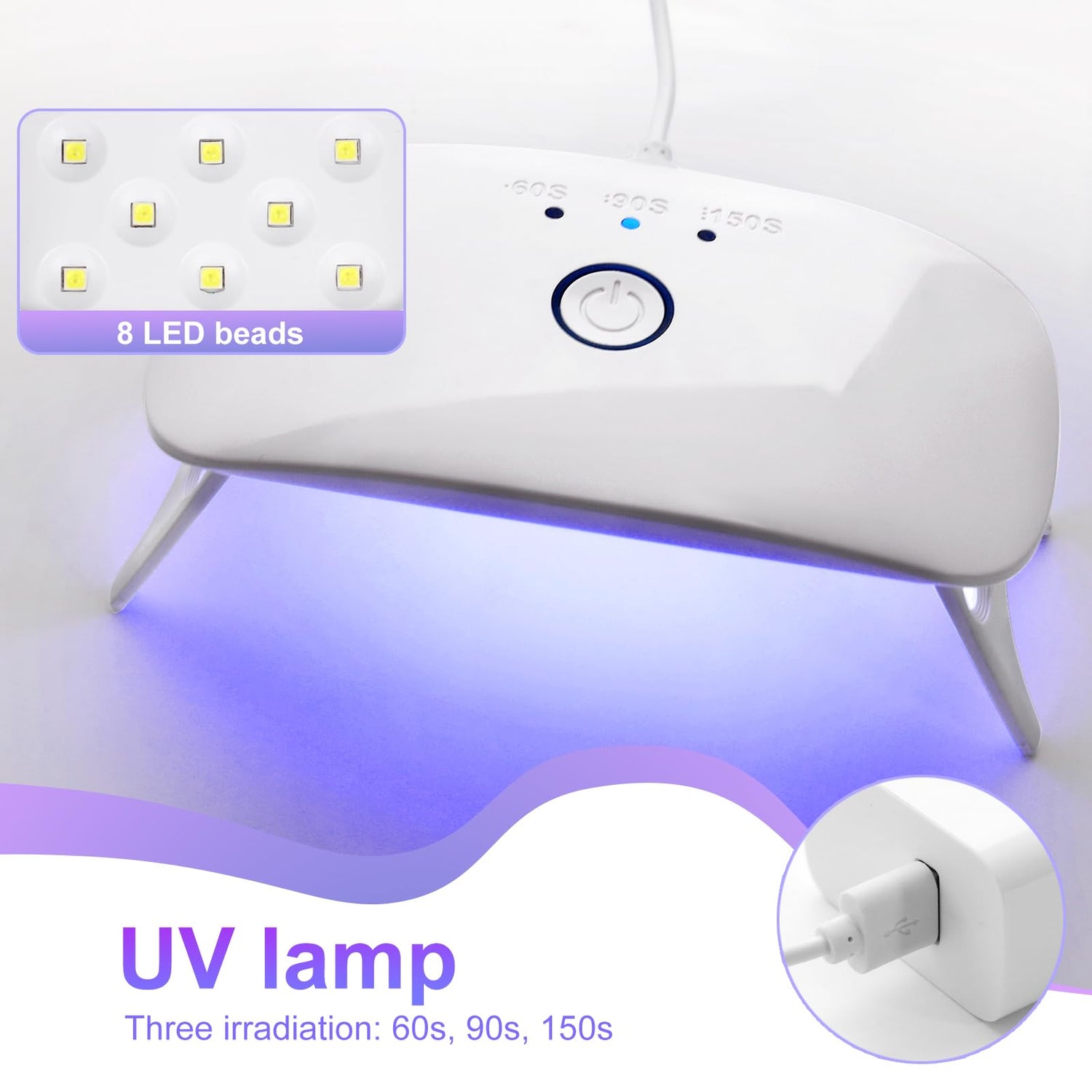 - 💎【Professional and Convenient】: Portable mini uv light for resin adopts higher energy lamp beads, 8 UV lamp beads design, power up to 12w, 1-3 minutes to cure. Supplied with data cable, designed with usb type-c interface.