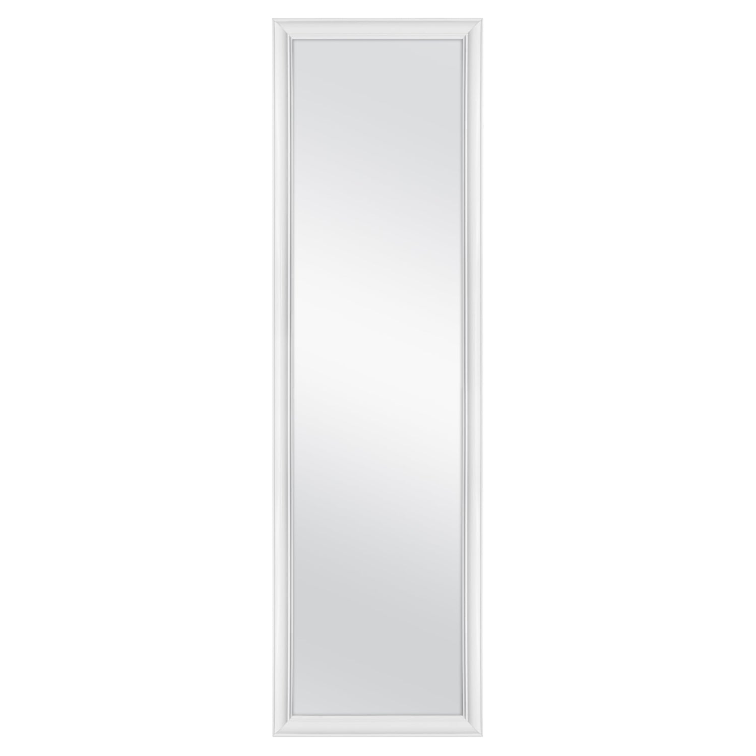 Details: Transform your space with this sleek and versatile 13" x 49" white over-the-door mirror. The classic white frame features clean lines and a timeless design that complements any decor style, from modern to traditional. Perfect for bedrooms, bathrooms, or dressing areas, this full-length mirror makes any room feel more spacious and bright. The over-the-door design offers hassle-free installation without the need for wall mounting, while the generous dimensions provide a complete head-to-toe view. The durable frame construction ensures long-lasting use, and the mirror's crystal-clear reflection helps you perfect your look before heading out. Whether you're coordinating outfits, checking your appearance, or adding depth to a small space, this mirror combines functionality with elegant style.