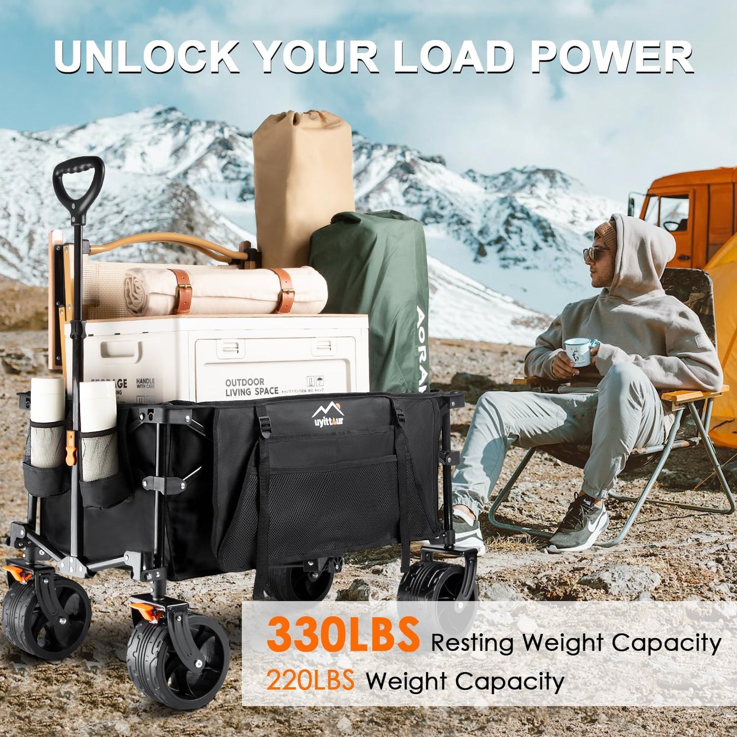 - 【Camping, Transport, Always Enjoyable】: For a wagon that can roll fully loaded across the different terrains, check out the Uyittour Wagon. You will really be attracted by its super practicality and stylish appearance. The wheels configuration gave us significantly more control for stability and maneuverability on uneven terrain. This was easily the best cart for most terrains. Make Uyittour wagon be your perfect companion for camping trip. You can take it home to be your the efficient helper.