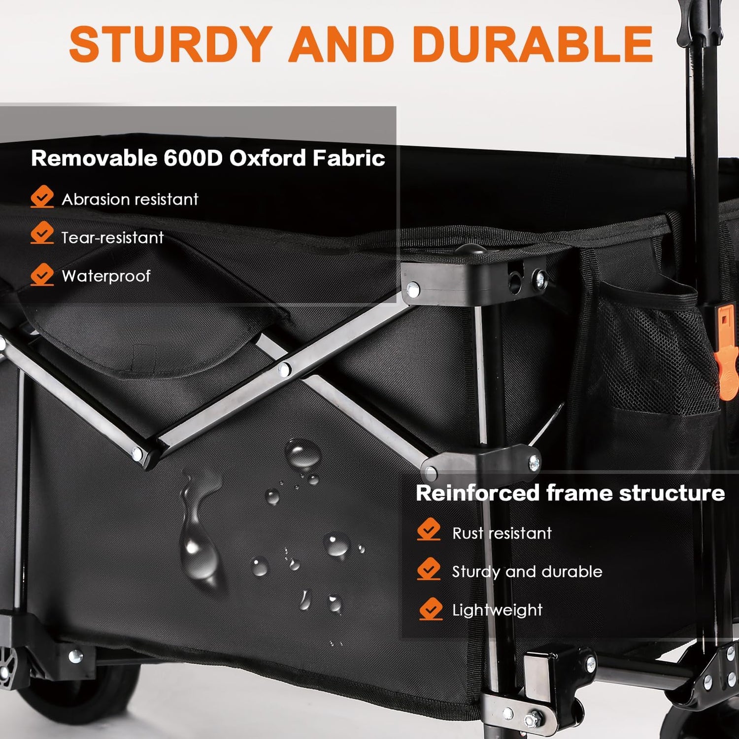- Built to Endure: Constructed from a robust alloy steel frame, this wagon's more reliable than your morning alarm clock. It’s designed to not rust, corrode, or complain. The 600D Oxford fabric lining? It's like the superhero cape - waterproof, tear-resistant, and removable for those laundry days.