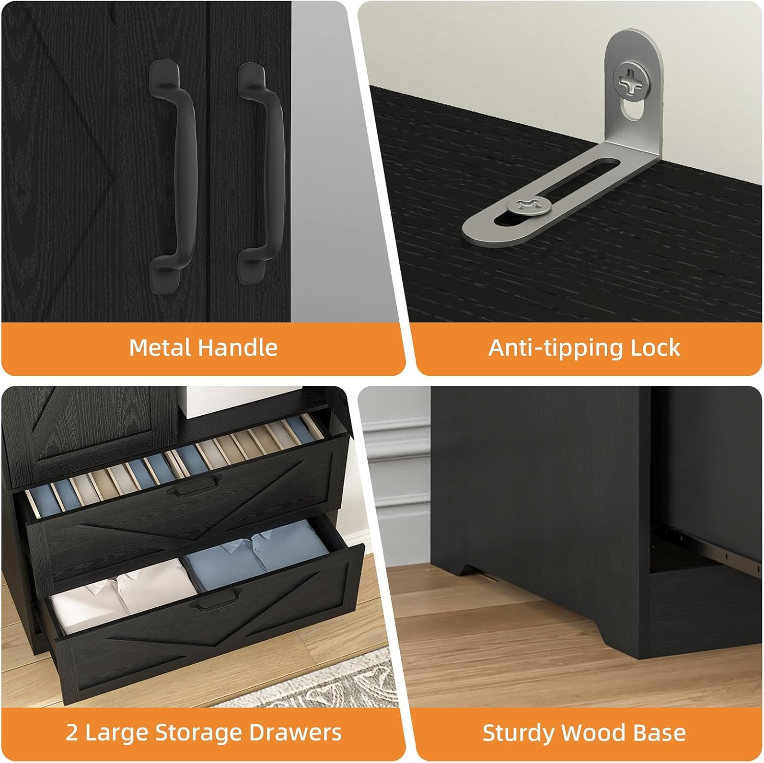 - 【Stylish & Practical Bedroom Closet 】Blending farmhouse charm with modern functionality, this storage closet complements both contemporary and vintage décor. Perfect for bedroom, walk-in closets, or kids’ rooms—Greatly match different house style