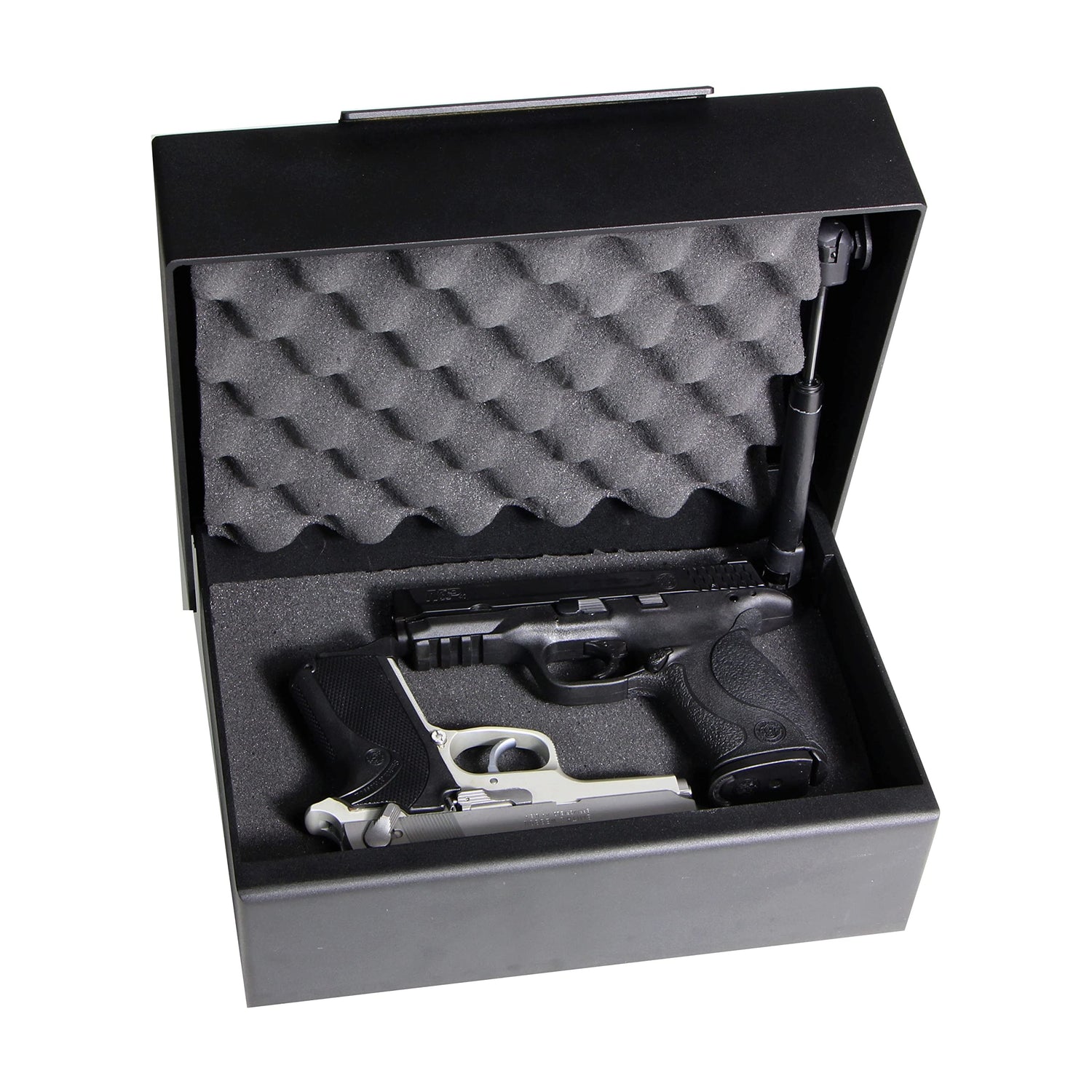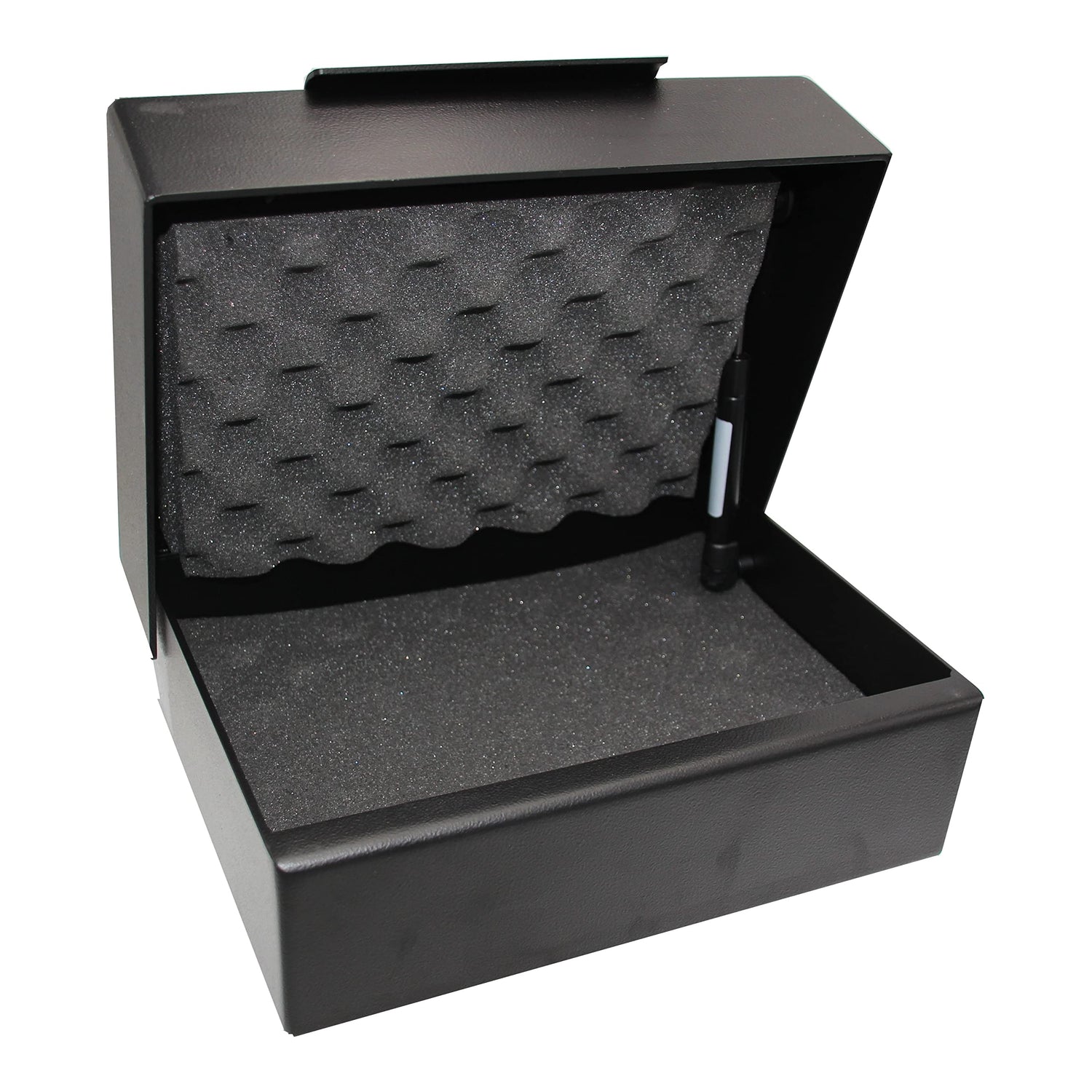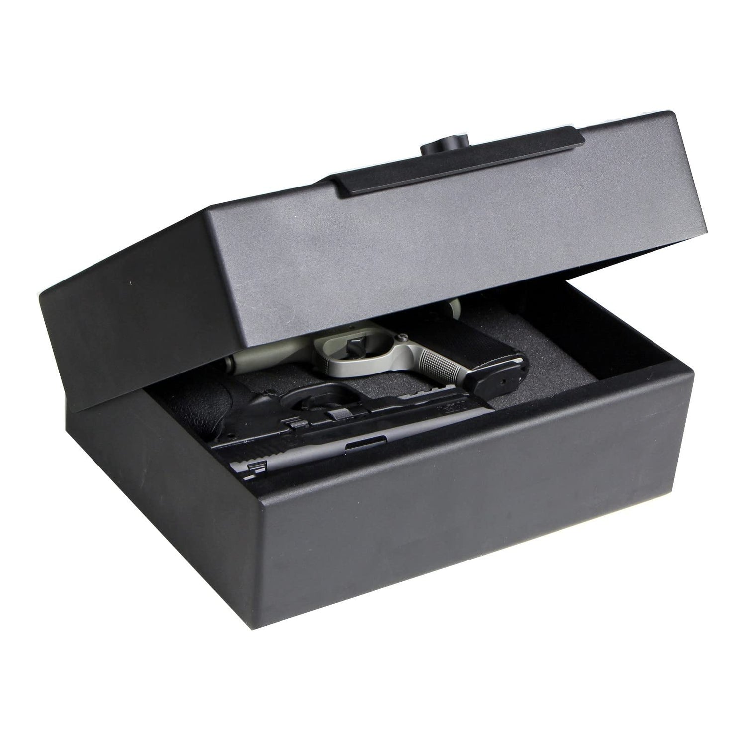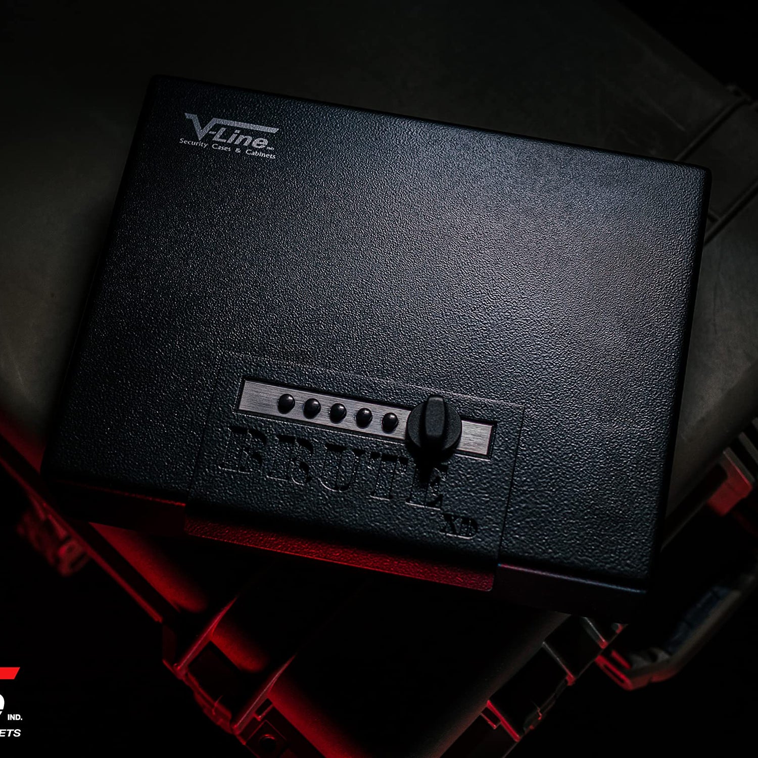Details: V-Line Ind. introduces the new “BRUTE XD” super duty quick access pistol box with the Interior Steel Lock Cover. With the NEW Interior Lock Cover the new Brute XD is almost impossible to be forced open by attacking the lock. The “BRUTE XD” is the perfect solution for keeping hand guns and valuables safe and out of reach of the wrong hands. Constructed of rugged 10ga. steel with an overlapping lid making it virtually pry-proof when bolted down to a solid surface. The “BRUTE XD” is nicely finished in a durable tactical black powder coating. The reliable SIMPLEX five push button mechanical never requires batteries. If you are looking for a quality, heavy duty, tough and secure pistol case, look no further than the BRUTE XD.