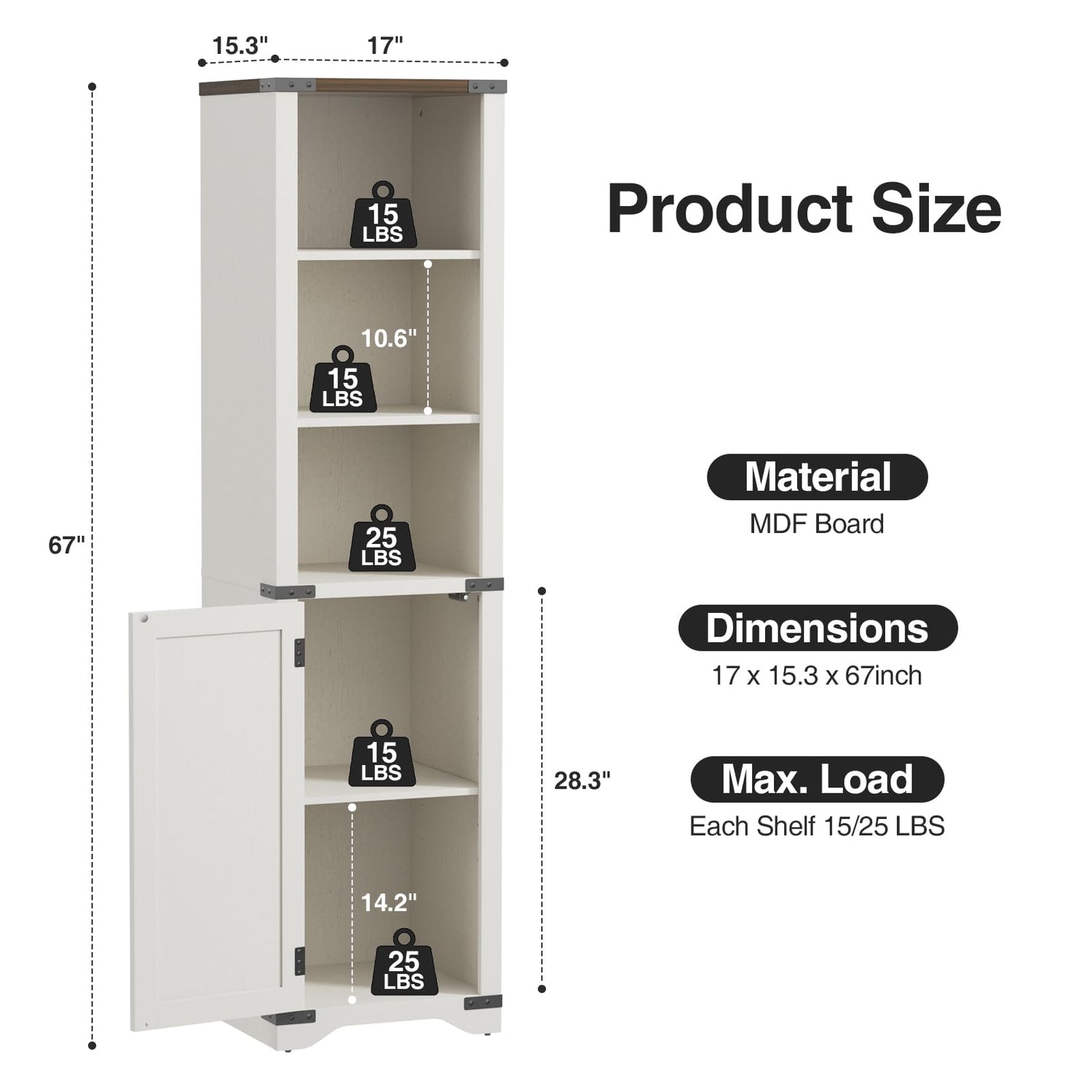 - Narrow & Tall Design for Small Space: The tall narrow bookshelf is 15.3"D x17"W x 67"H. It is a versatile piece of furniture, suitable for a variety of rooms. With its narrow design, it uses limited space efficiently, providing ample storage without taking up too much floor space. Additional, it comes with an anti-tip device to keep you and your family safe.