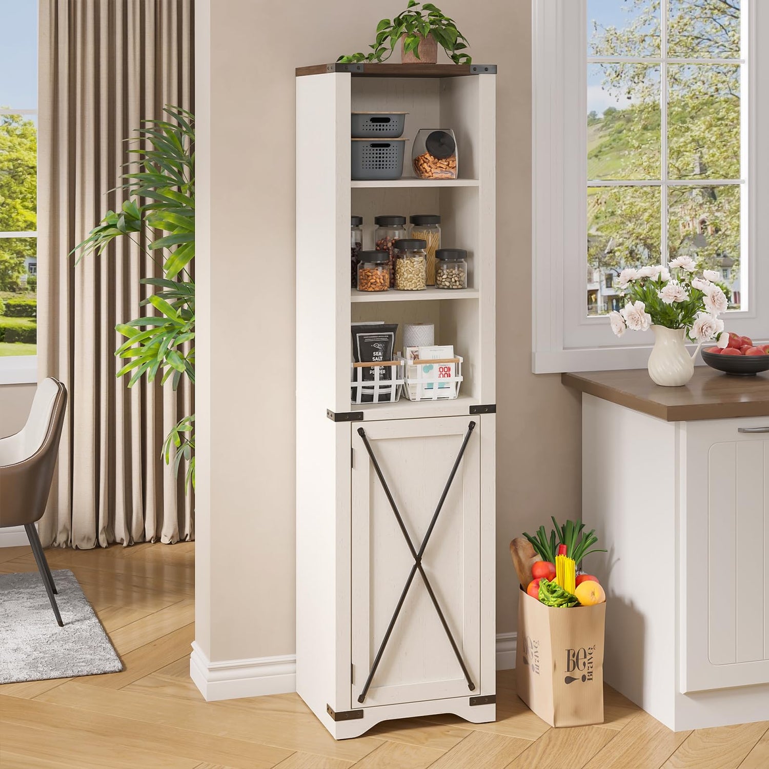- Unique Farmhouse Bookcase: The white bookshelf is crafted by our designers with ironwork X barn doors. Modern metal decorations blend harmoniously with rustic style. The wood grain finish is natural and authentic. It is the ideal book case for modern farmhouse style.