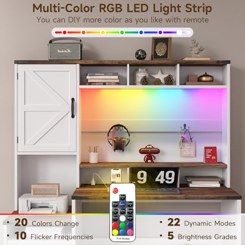 - Executive Desk with Charging Station and LED Lights: Vabches farmhouse desk equipped with 2 USB ports and 3 AC outlets, providing added convenience for charging your electronic devices. The cool LED light has over 20 colors and 22 dynamic modes, you can choose the light brightness and speed mode according to needs and scenes which creates fantastic ambiance in your room.
