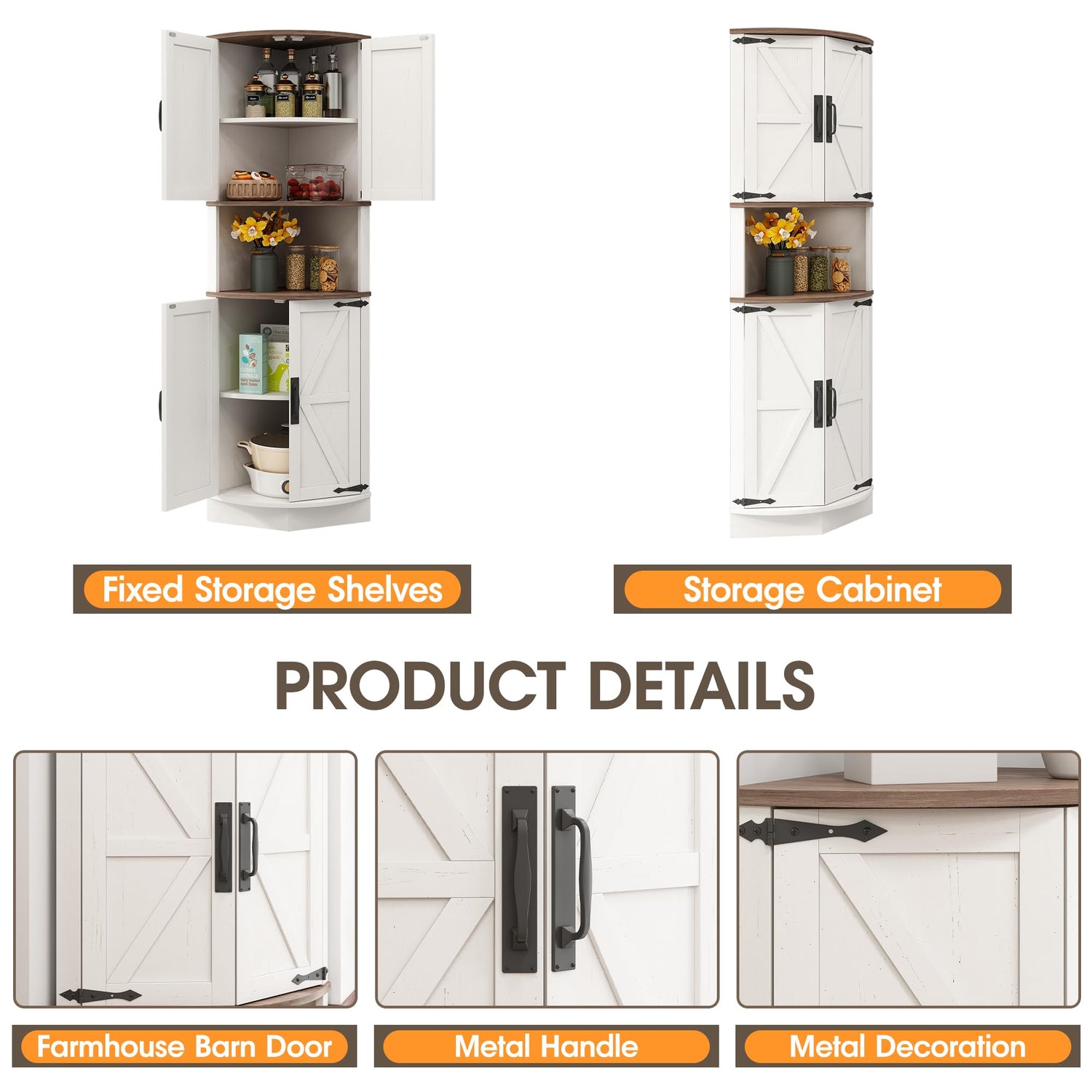 Vabches 64.8" Tall Farmhouse Corner Cabinet with 4 Doors and 5 Storage Shelves, Farmhouse Storage Cabinet with Barn Door Design, Home Space Saver for Living Room, Kitchen, Laundry Room,White