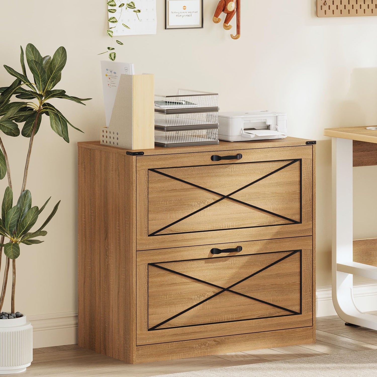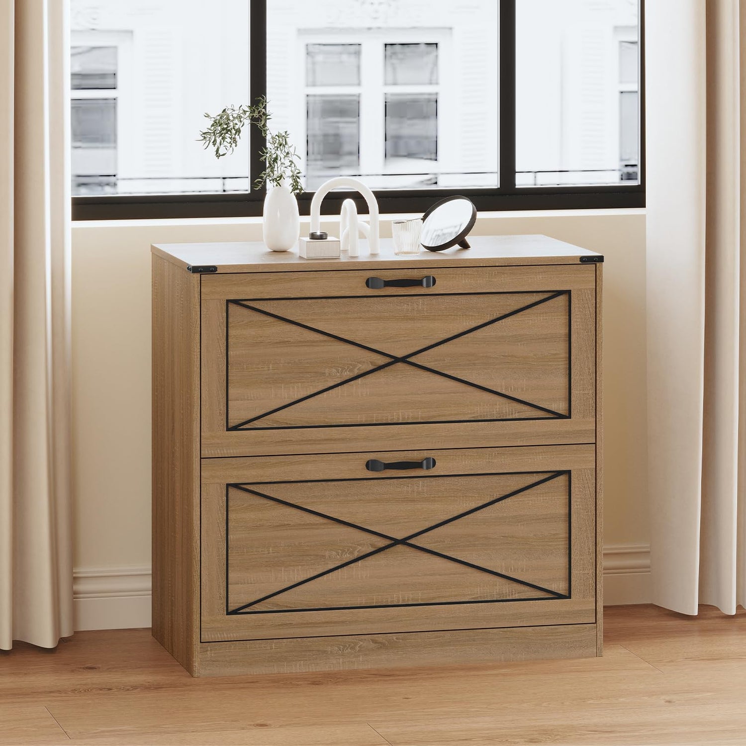 Vabches Farmhouse File Cabinet with 2 Drawers, Lateral Filing Cabinet Office File Cabinet with File Drawers, Wood Rustic Storage Cabinet File Organizer for Home Office, Living Room, Brown