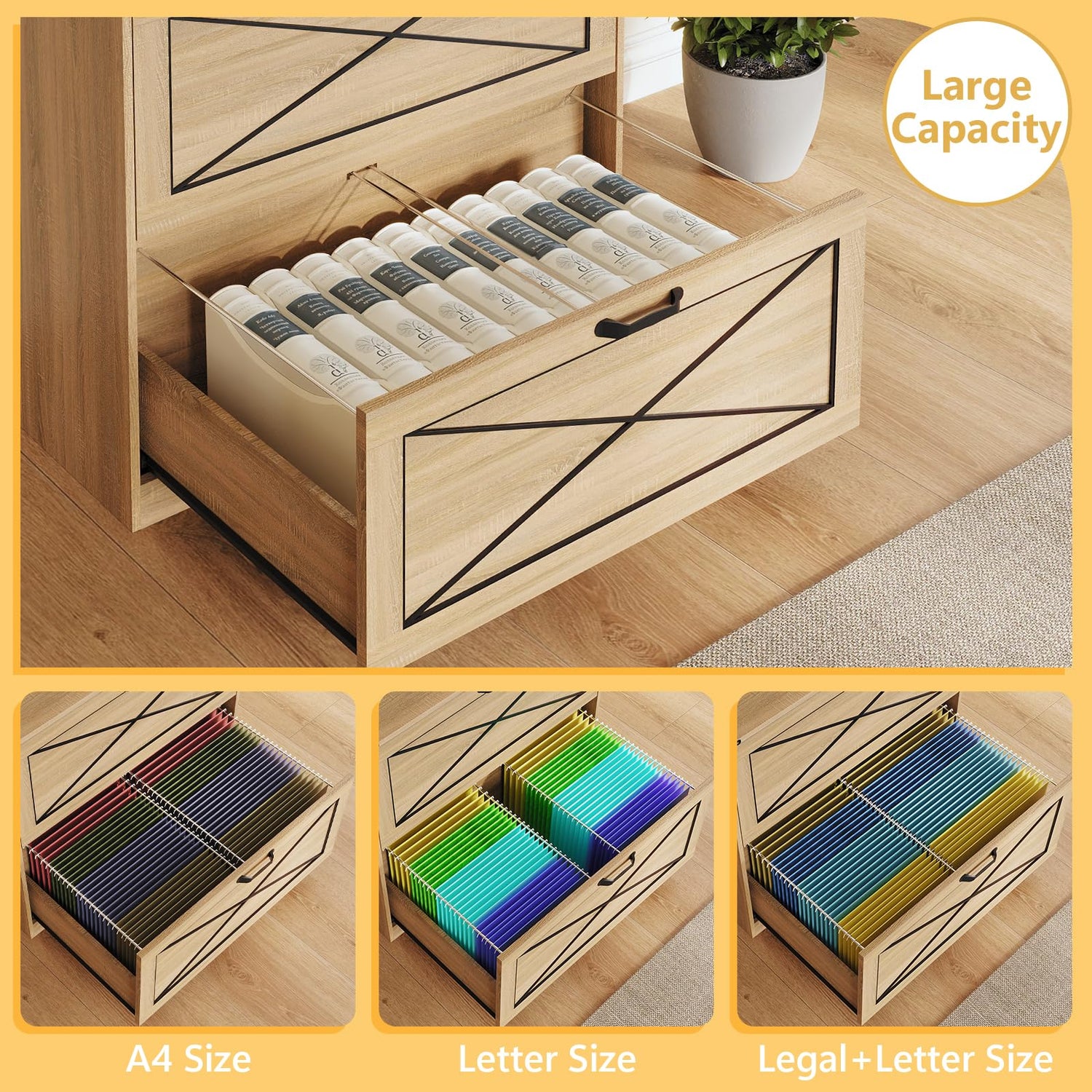 - 【Charming Farmhouse Rustic Style】:The file cabinet exudes a captivating farmhouse charm, with its rustic wooden finish and quaint, vintage handles that evoke the warmth and simplicity of country living, adding a farmhouse atmosphere to your room.Office file cabinets have a rich and charming farmhouse style that is suitable for different types of rooms.